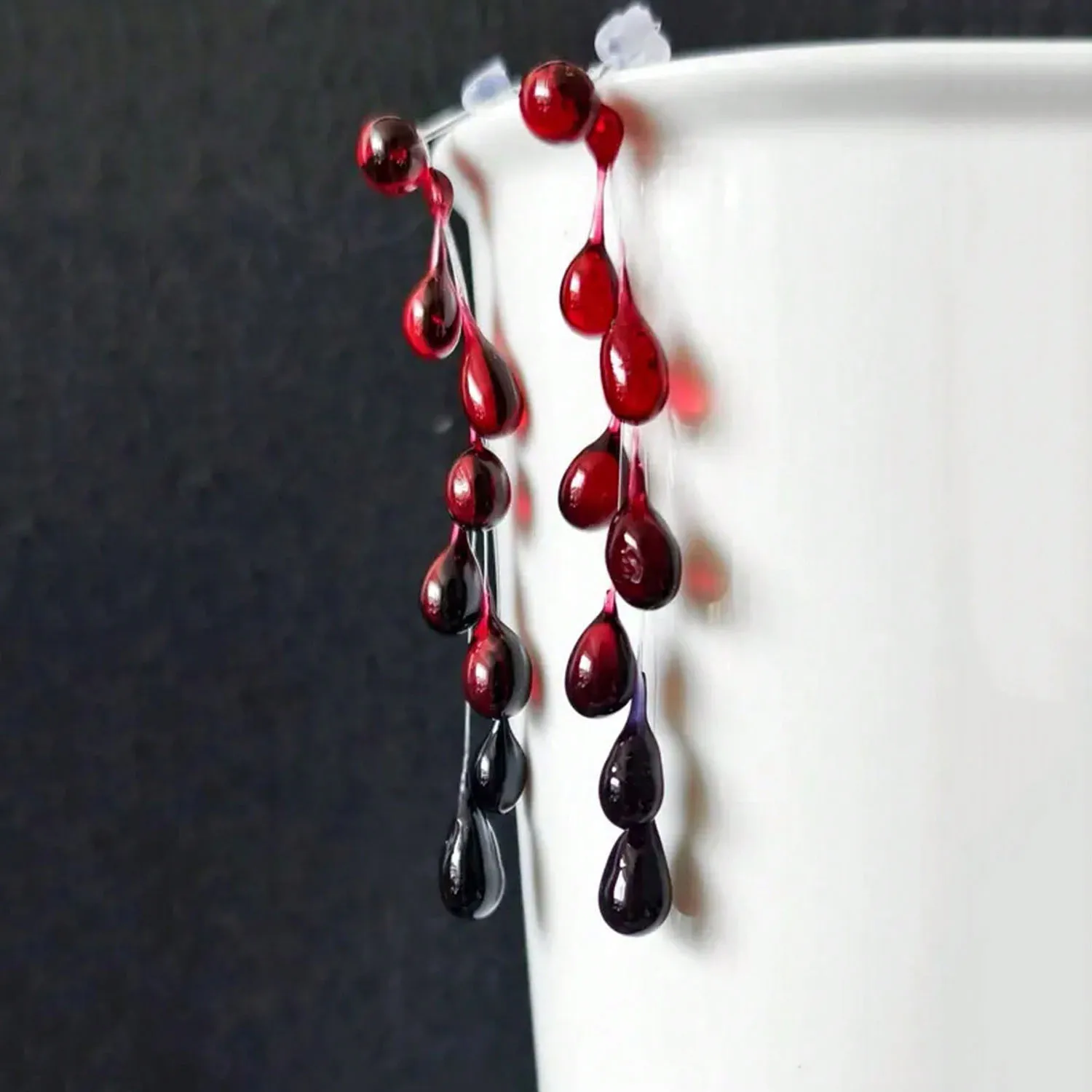 Dark Style Simulation Blood Drop Red Water Drop Tassel Earrings Gothic Funny Handmade Fashion Jewelry Women Halloween Gifts
