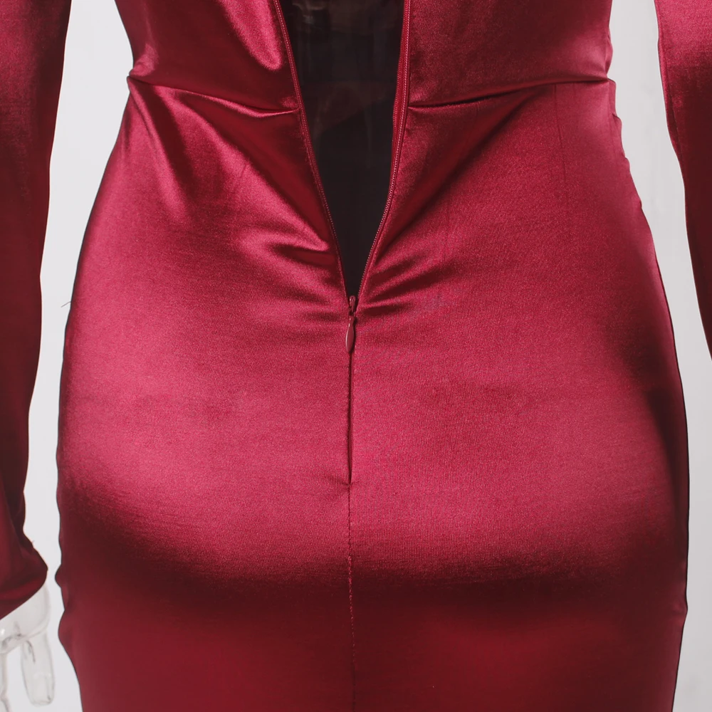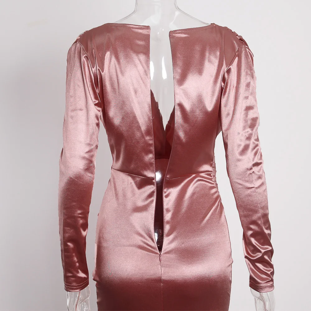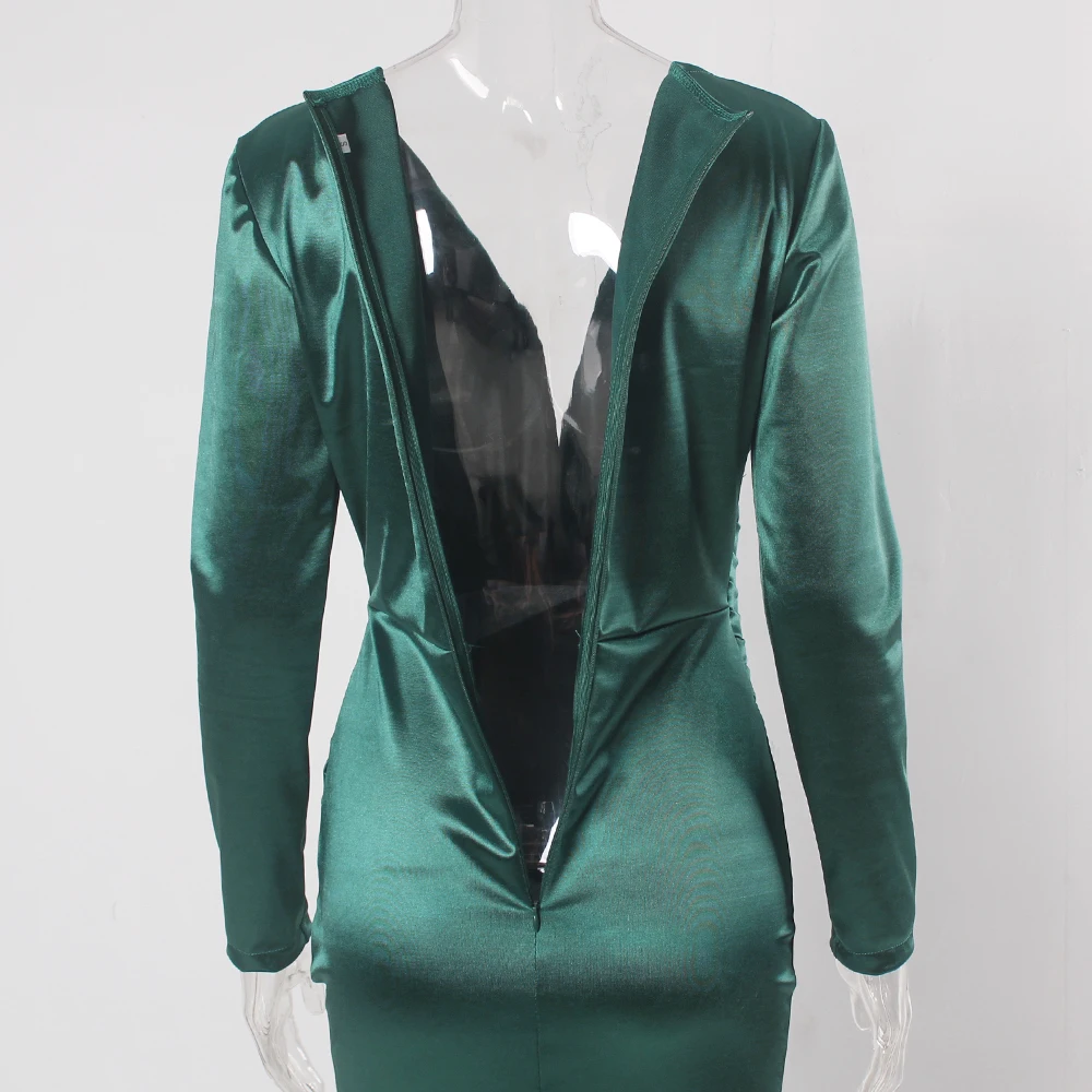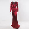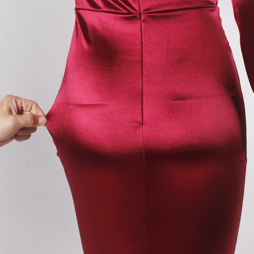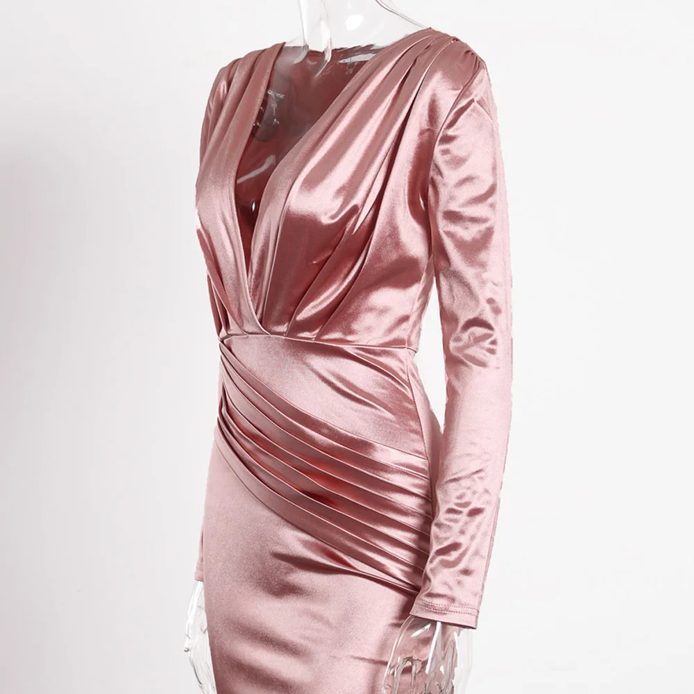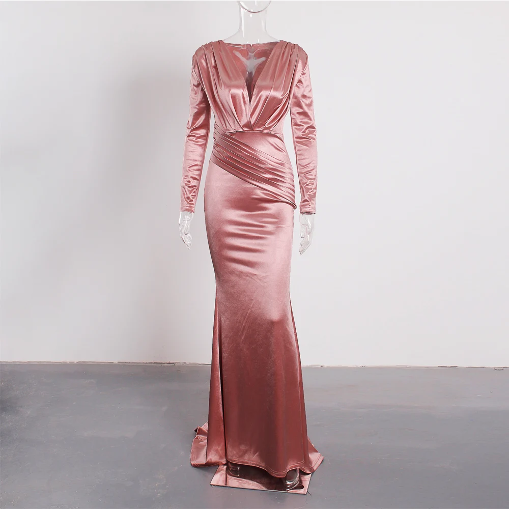 victoria’svogue 2021 Deep V Neck Full Sleeved Pleated Long Evening Party Dress Stretch Satin Floor Length Event Gown Prom Robe