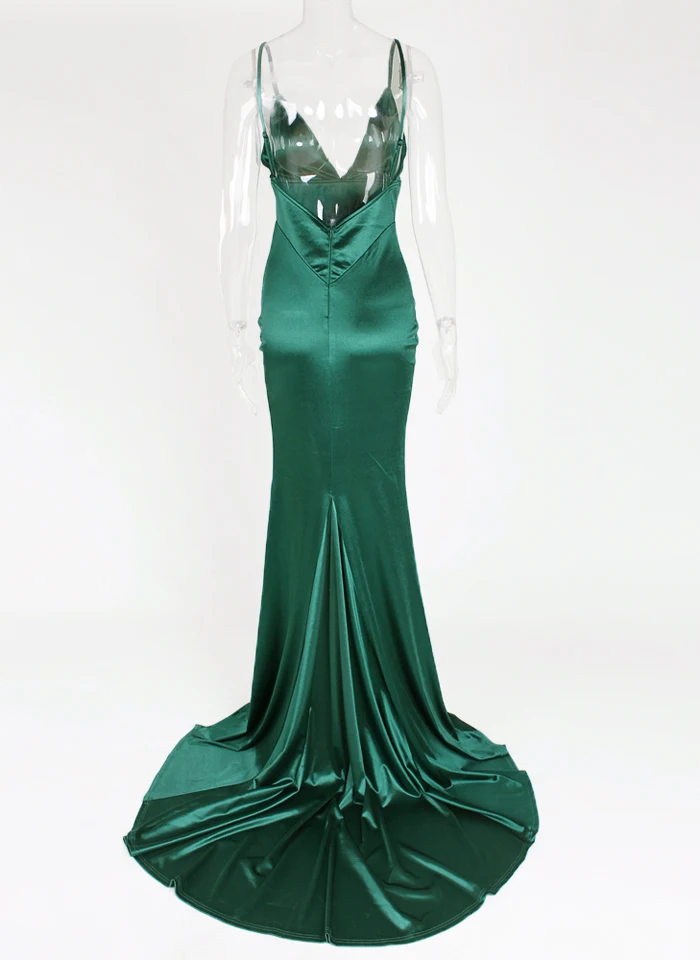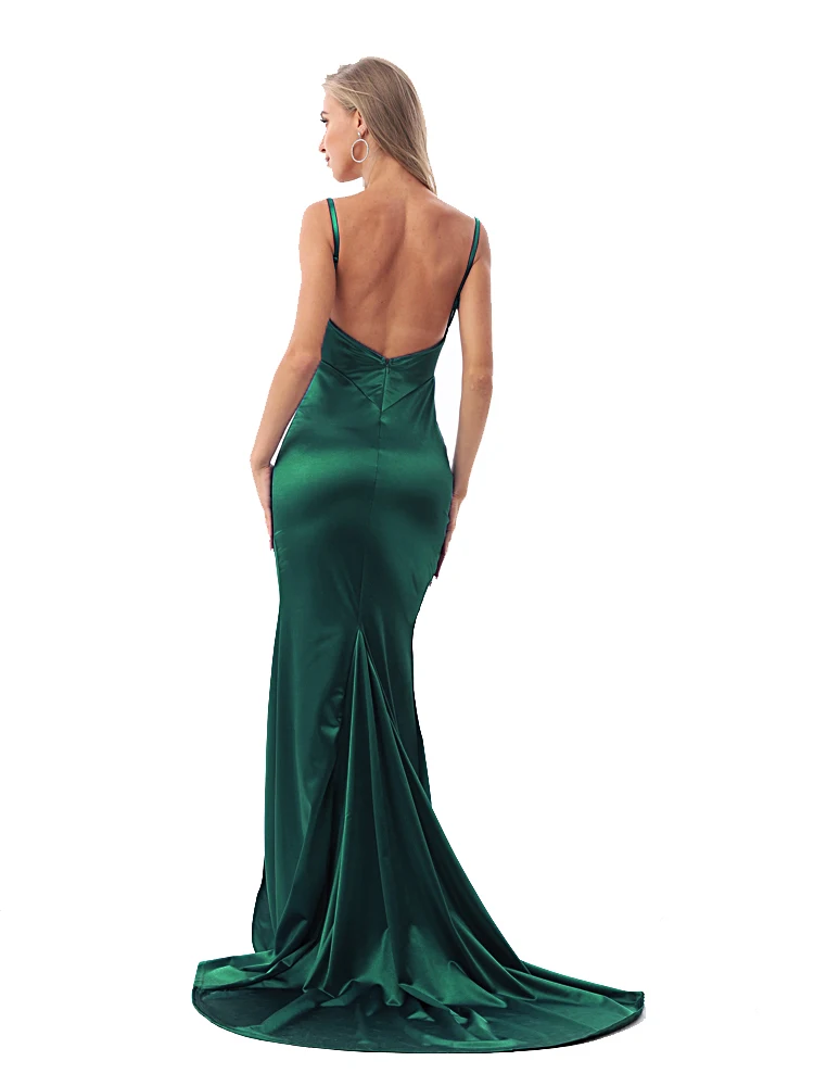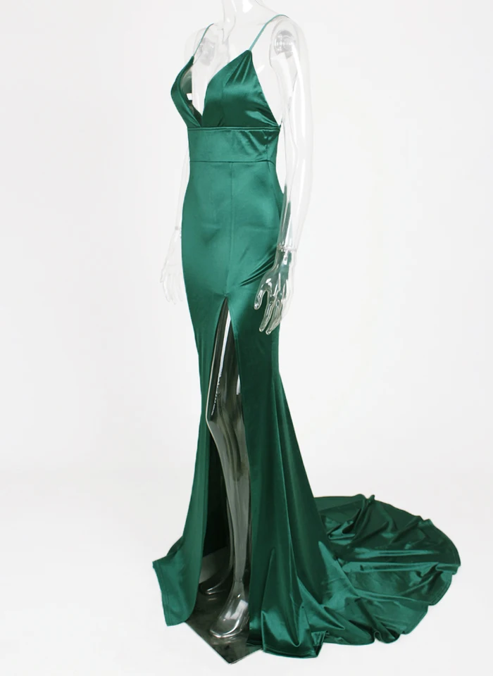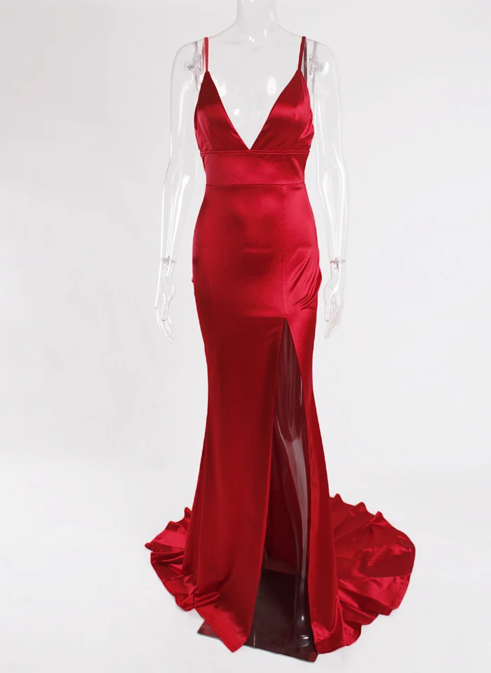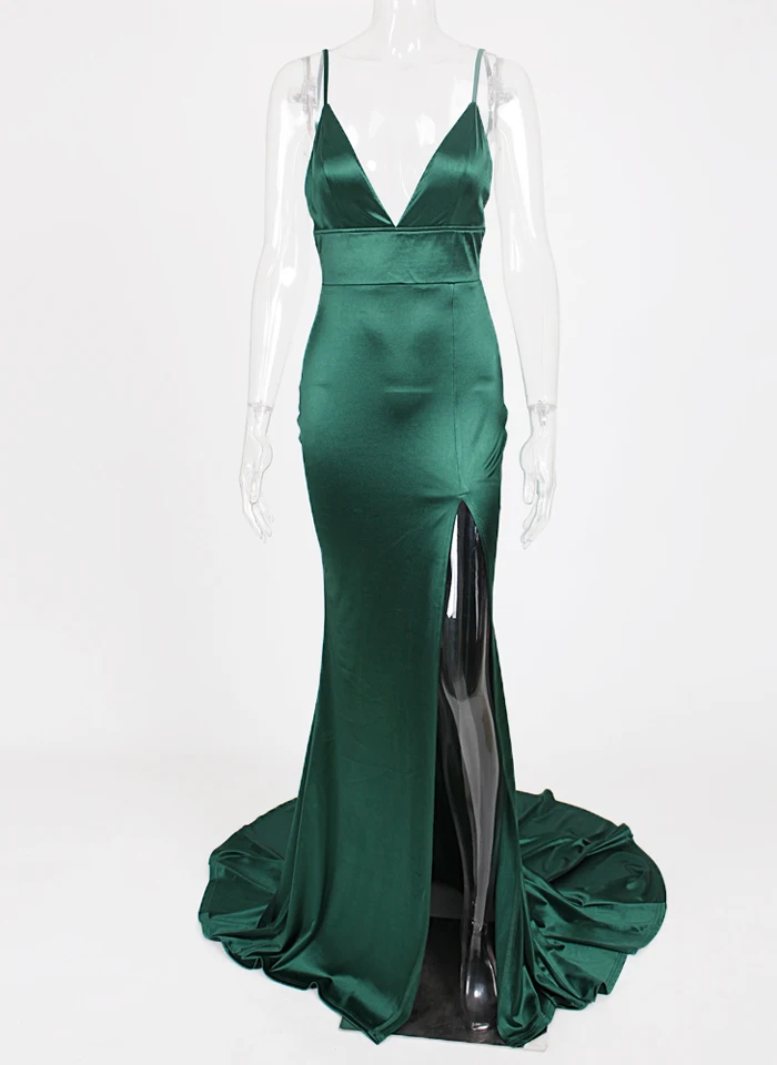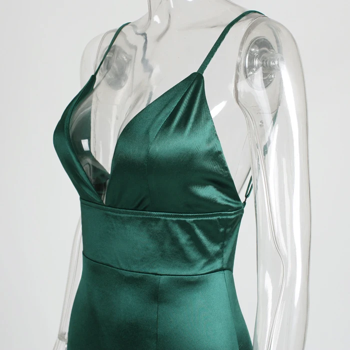 victoria’svogue 2021 Deep V Neck Stretch High Split Party Dress Satin Bodycon Backless Floor Length Summer Dress Sleeveless Long Club Dress