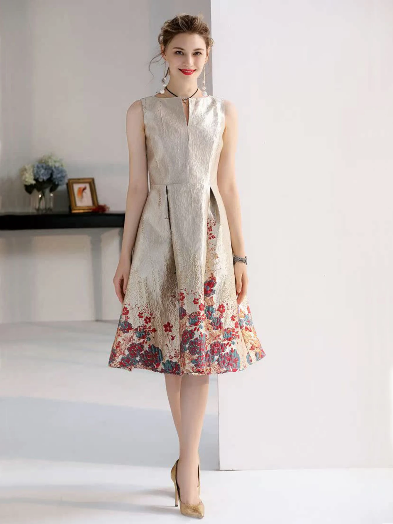 Victoria’s Vogue Luxury Women Fashion High Quality Jacquard A Line Ball Gown Sleeveless Summer Casual Clothing Midi Femme Party Dressses