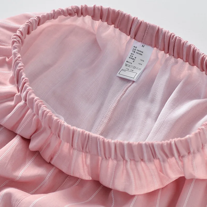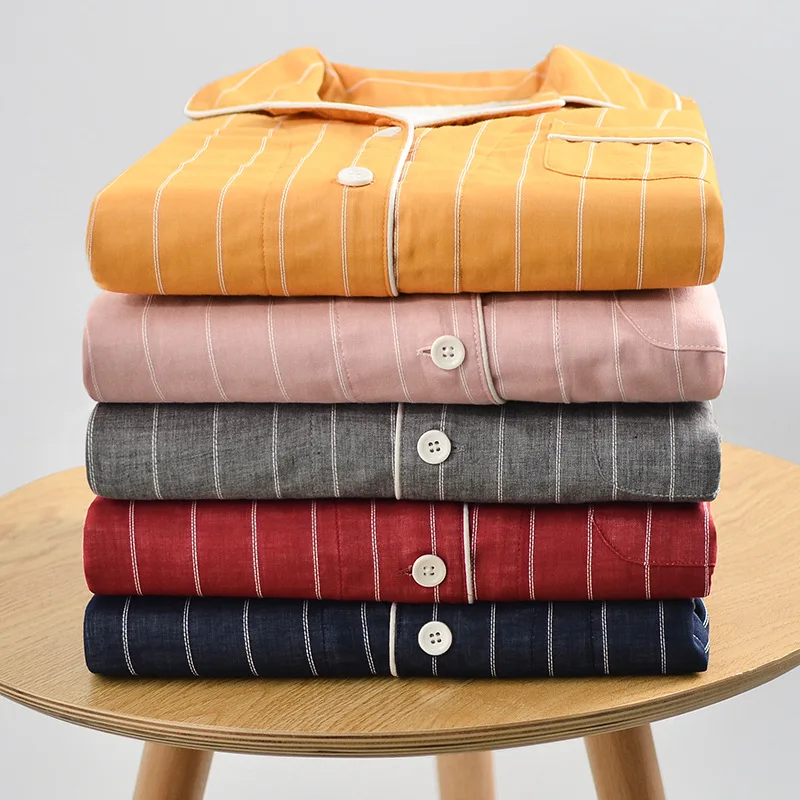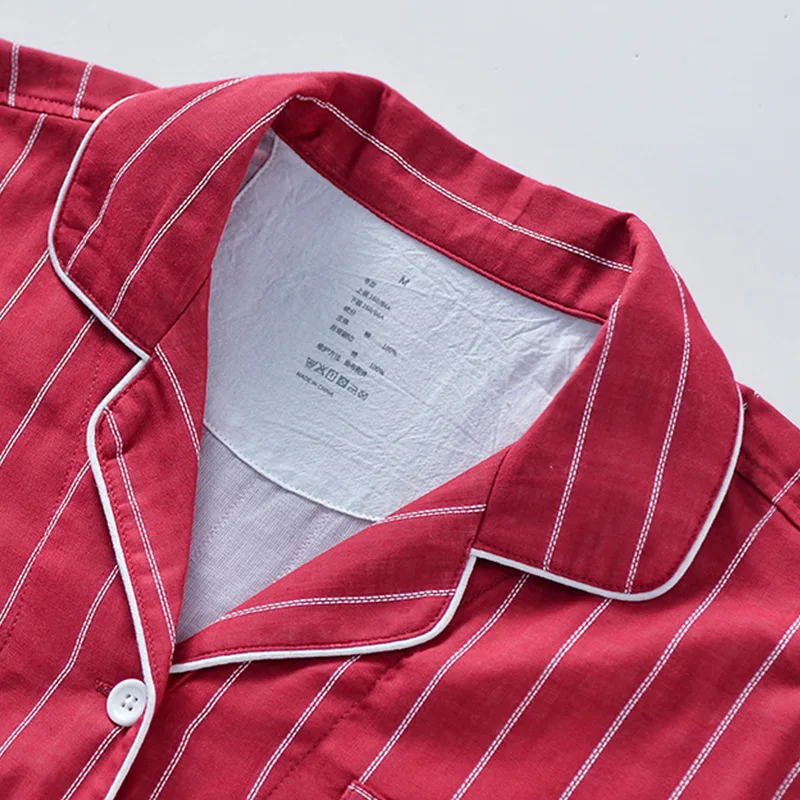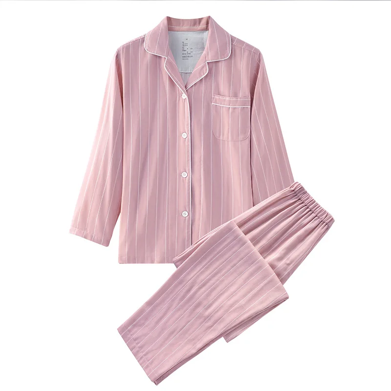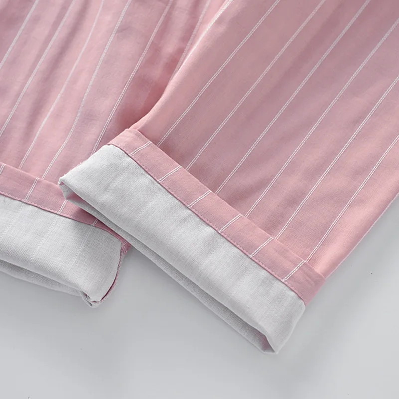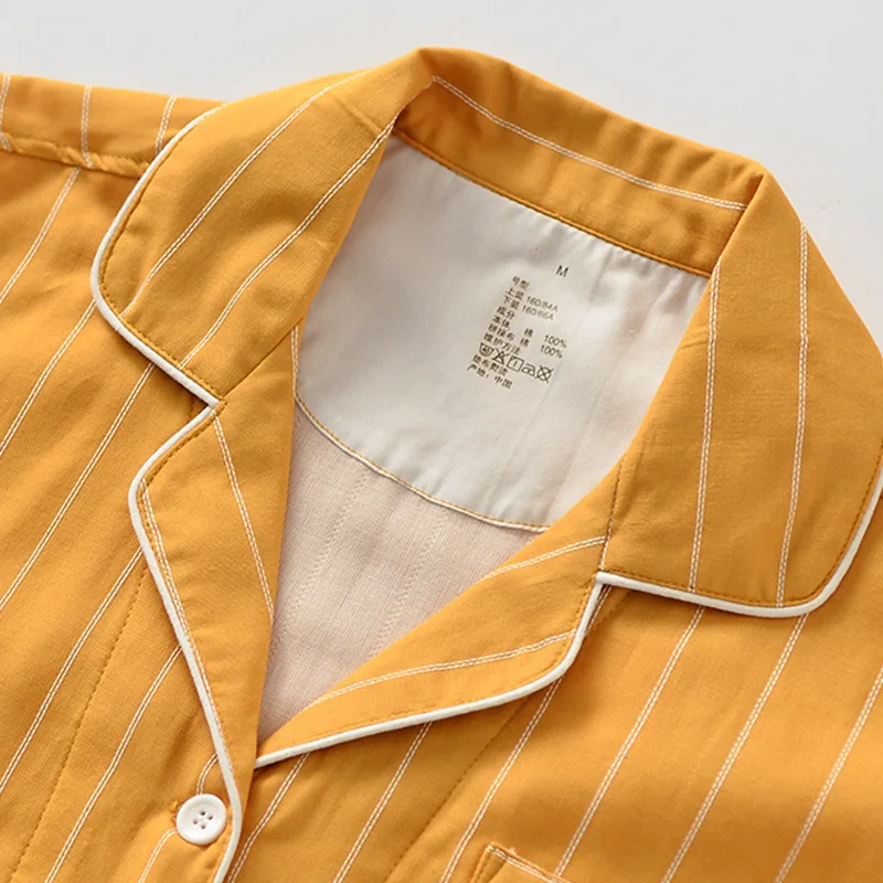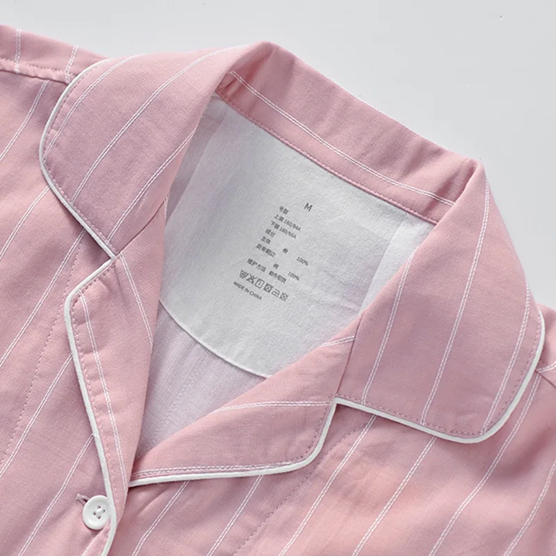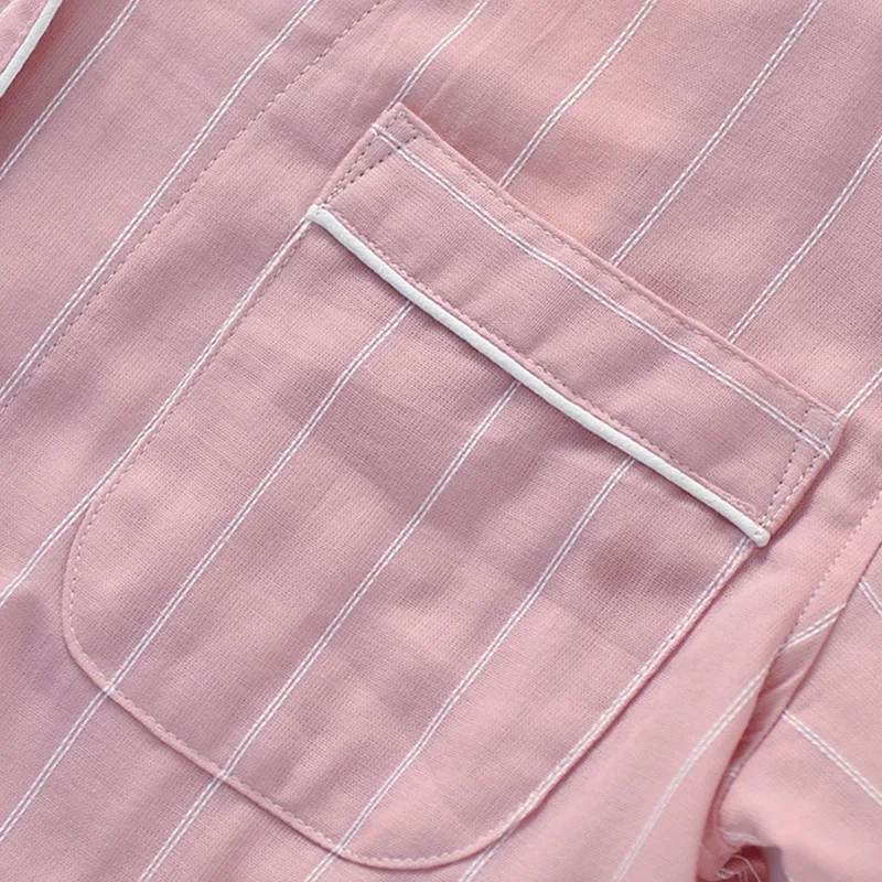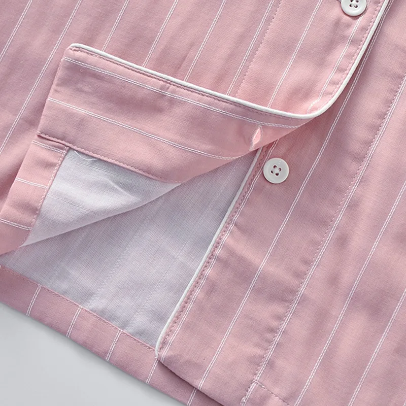 Victoria’s Vogue Double Layer Yarn Homewear Good Quality Cotton Couples Striped Pajamas Set for Men’s and Women’s Sleepwear Clothing Suit