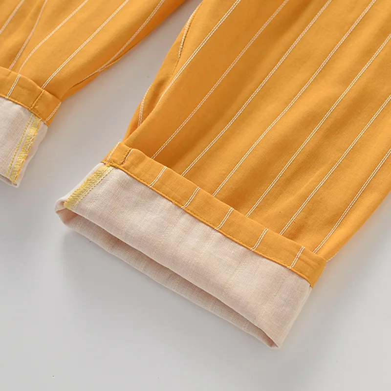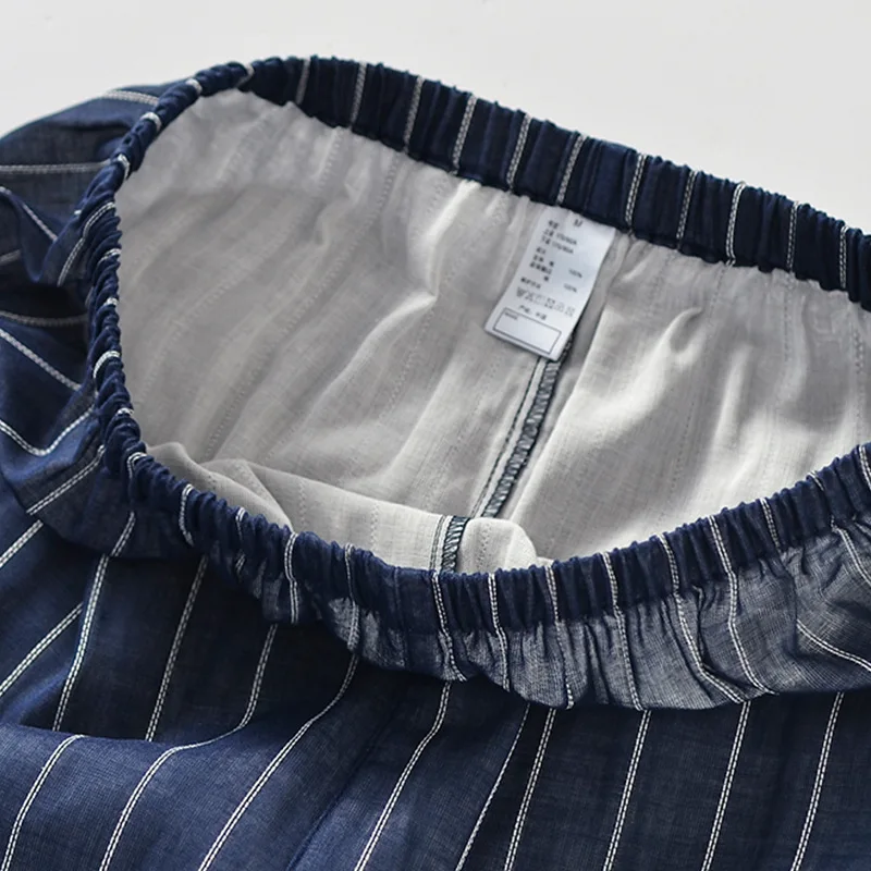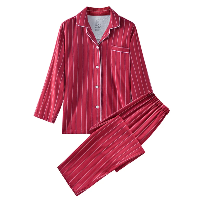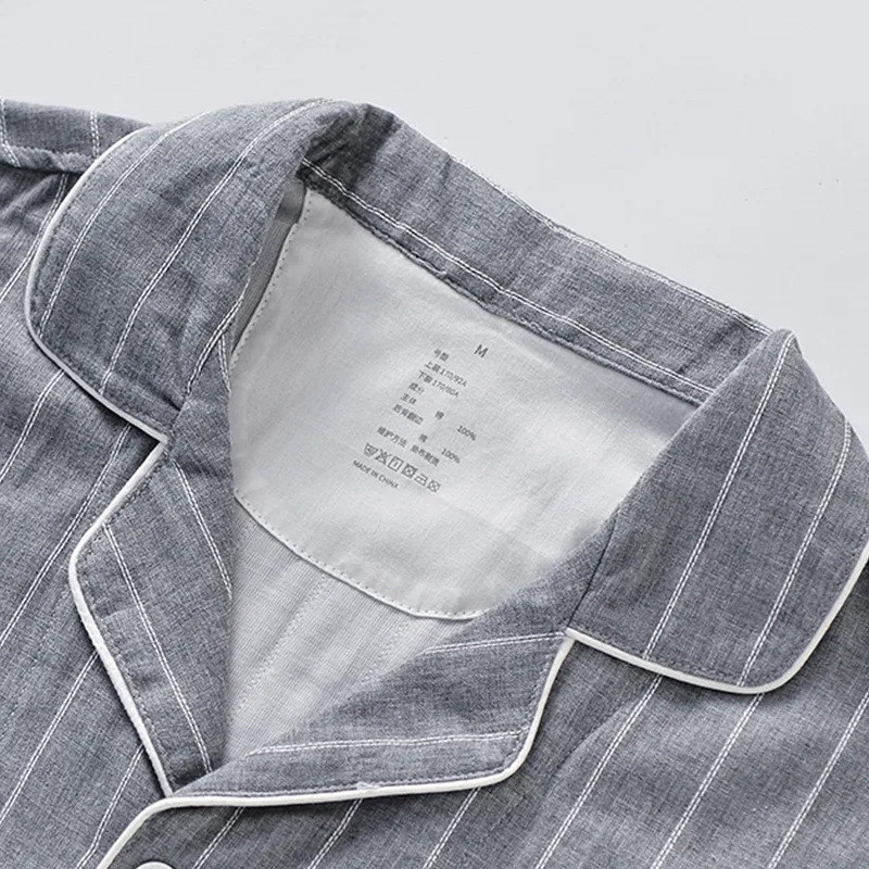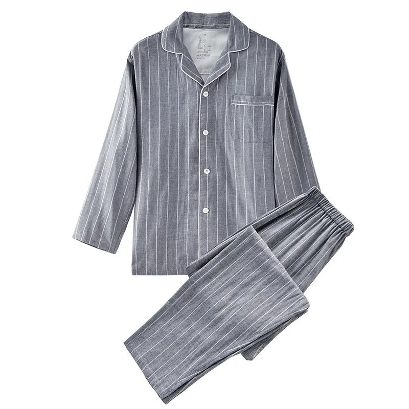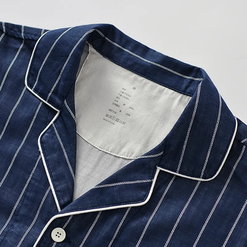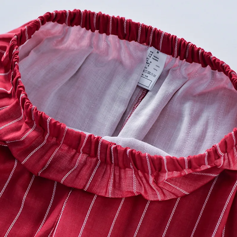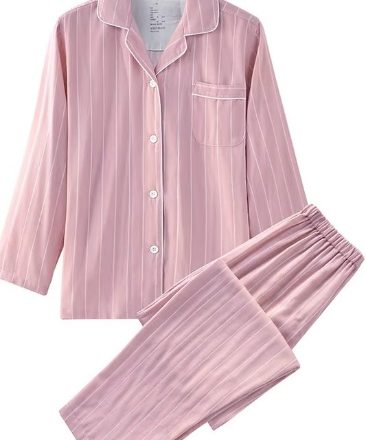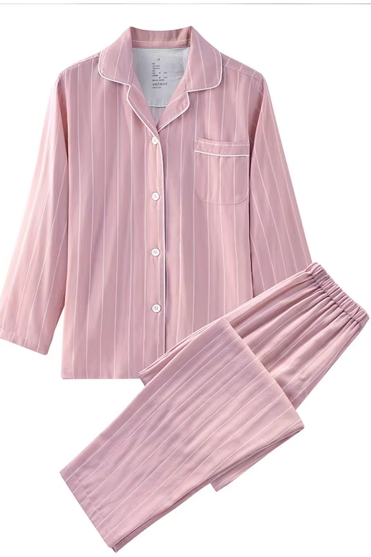 Victoria’s Vogue Double Layer Yarn Homewear Good Quality Cotton Couples Striped Pajamas Set for Men’s and Women’s Sleepwear Clothing Suit
