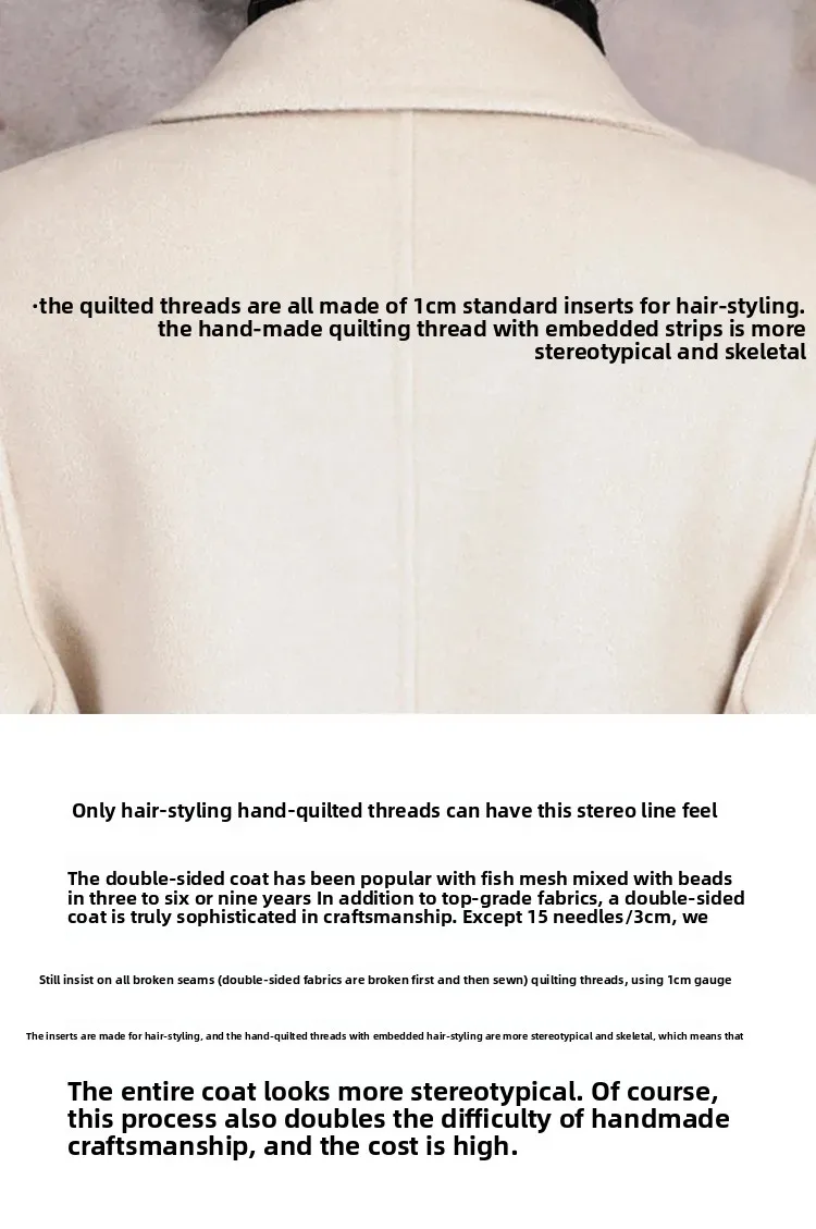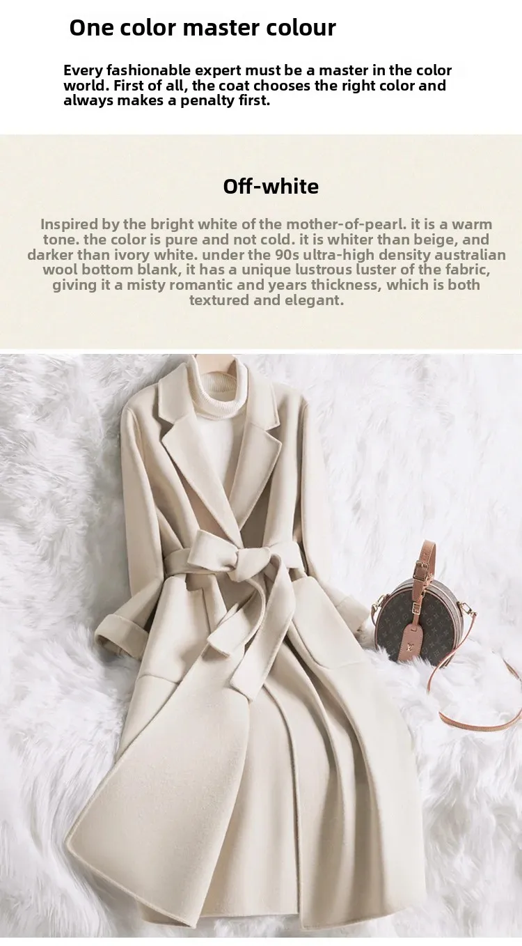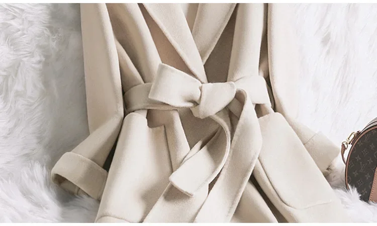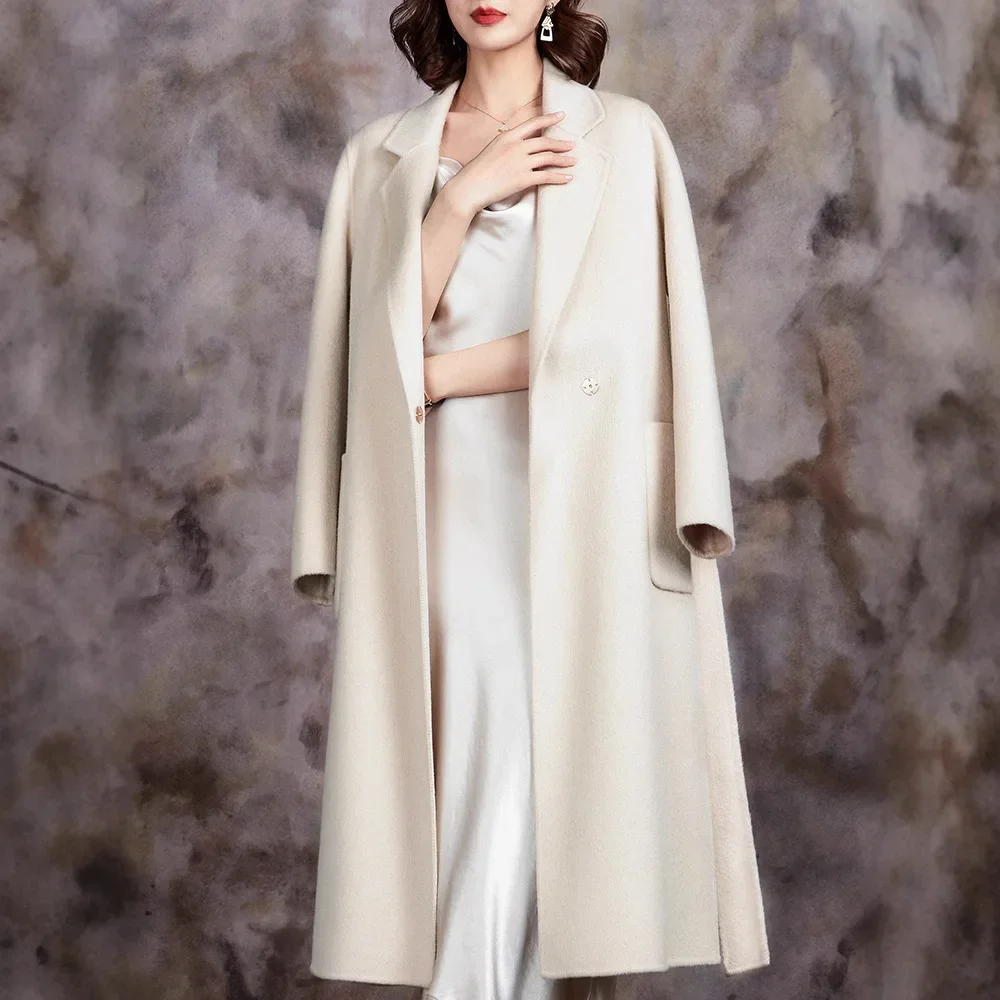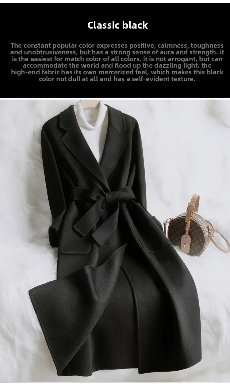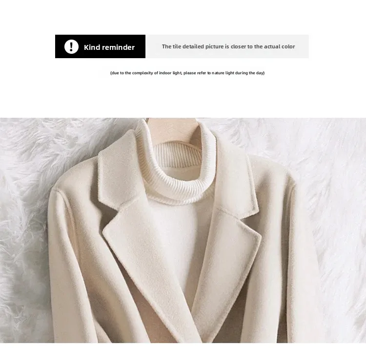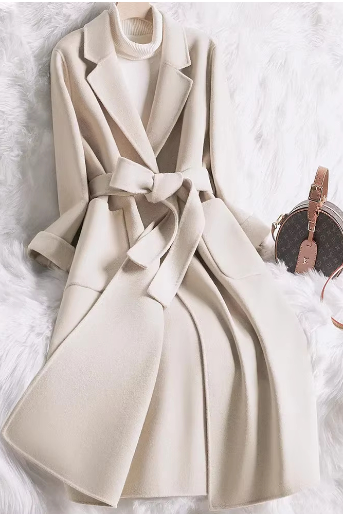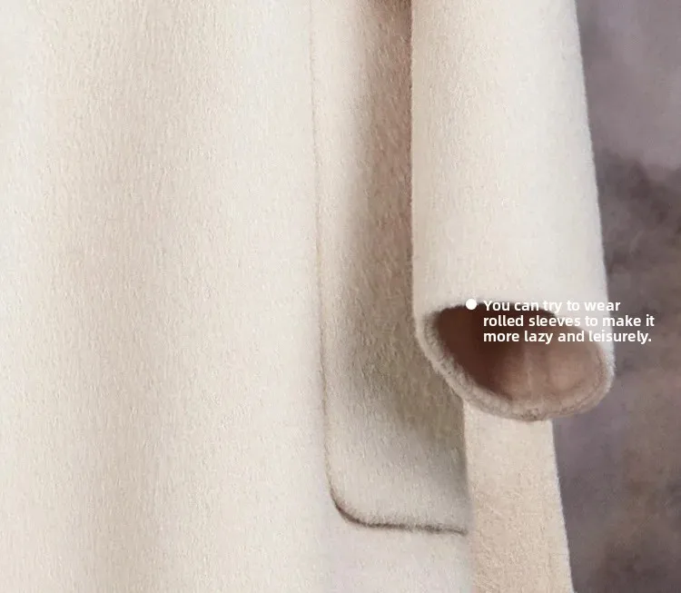 • Double-sided Cashmere Material : Crafted from premium double-sided cashmere, this coat offers unparalleled softness and warmth, perfect for the spring season.