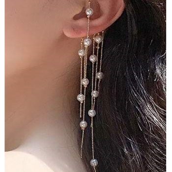 Victoria’s Vogue 2021 New Gold Pearl Tassel Earrings Drop Dangle Ear Clip For Women Long Cuff Earring Bohemia Jewelrys