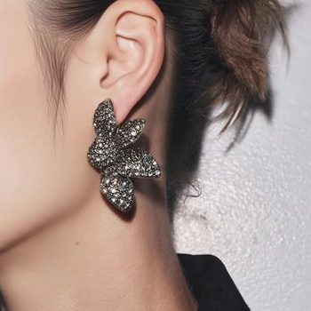 Victoria’s Vogue Vintage Gothic Black Rhinestone Flower Earrings for Women Fashion Holiday Party Jewelry Gifts
