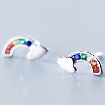Victoria’s Vogue New Arrival Colorful Female Temperament 925 Sterling Silver Jewelry Female Sweet Cute Cloud Rainbow Crystal Stud Earrings