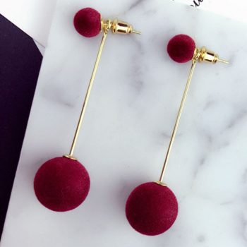 victoria’s vogue Fashion Red Black Plush Ball Drop Earrings For Women Korea Personality Round Long Tassel Earrings Statement Jewelry Gift
