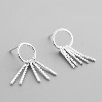 Victoria’s Vogue Sweet Simple Fashion 925 Sterling Silver Jewelry Temperament Cute Fringed Tassel Round Female Anti-Allergic Earrings