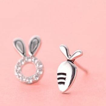 Victoria’s Vogue New Temperament Cute Radish Bunny 925 Sterling Silver Jewelry Personality Crystal Rabbit Stud Earrings
