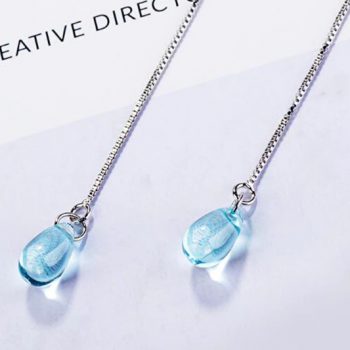 Victoria’s Vogue New Creative Temperament Long Ear Line 925 Sterling Silver Jewelry Blue Crystal Drop Shaped Exquisite Dangle Earrings