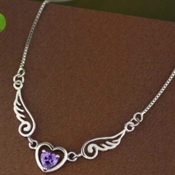 Victoria’s Vogue Hot Fashion Simple 925 Sterling Silver Jewelry Angel Lovers Purple Crystal Pendant Clavicle Chain Necklaces
