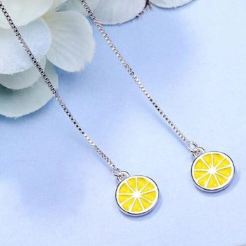 Victoria’s Vogue Sweet Small Fresh Yellow Lemon Personality 925 Sterling Silver Jewelry Long Tassel Temperament Epoxy Fruit Dangle Earrings