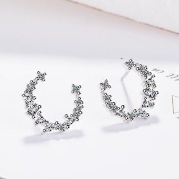Victoria’s Vogue Personality Female Temperament Crescent Bright Fashion 925 Sterling Silver Jewelry Wild Moon Crystal Heart Stud Earrings