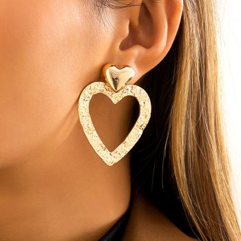 victoria’s vogue Kpop Love Heart Dangle Drop Earrings for Women Gold Color Geometric Piercing Earrings Fashion Ear Jewelry Brincos