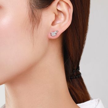 Victoria’s Vogue Genuine 925 Sterling Silver Sparkling Zircon Geometric Line Exquisite Stud Earrings For Women Wedding Engagement Jewelry