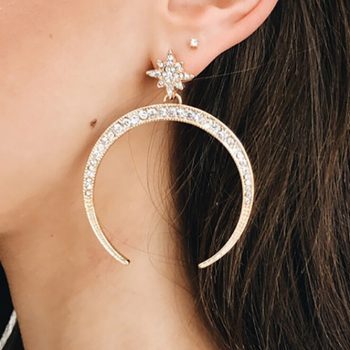 Victoria’s Vogue Fashion Bohemia Vintage Crystal Geometry Big Moon Earrings For Women Hanging Dangle Drop Earring Modern Jewelry