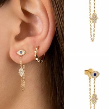 victoria’s vogue 925 Sterling Silver Trendy Evil Eye Hamsa Hand Palm Charm Dangle Earrings For Women Zircon Pave Long Chain Tassel Earrings