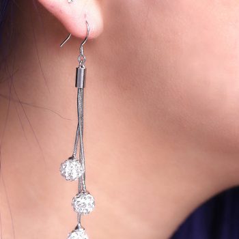 victoria’s vogue Silver Full drill ball tassel Dangle Earrings For Women Luxury Lady Party Fashion Jewelry