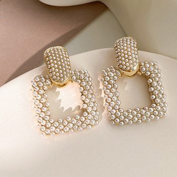 Victoria’s Vogue New Fashion Sweet Pearl Joker Senior Drop Earrings Elegant Contracted Geometric Square Senior Women Earrings Atmosphere