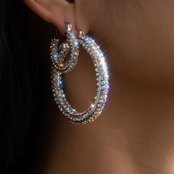 victoria’s vogue Steampunk Shiny Full Iced Out Rhinestone Crystal Hoop Earrings Luxury Bling Basketball Loop Earrings Women Jewelry