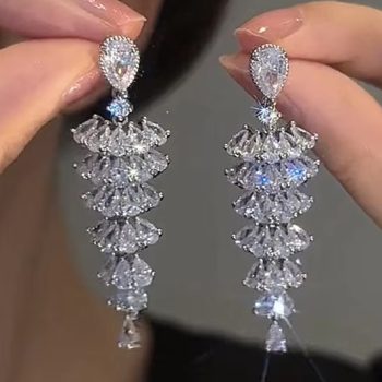 Victoria’s Vogue Luxury Geometric Dangle Drop Earrings for Women Wedding Party Jewelry Accessories Gorgeous Cubic Zirconia Bridal Brincos