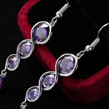 Victoria’s Vogue Classic Twisted Spiral Column Long Drop Earrings For Women Luxury Purple CZ Stone Trendy Wedding Jewelry Female Earring Hook
