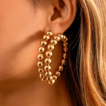 victoria’s vogue Punk Exaggerated CCB Plastic Ball Hoop Earrings Gold Color Geometric Big Round Circle Earrings for Women Jewelry