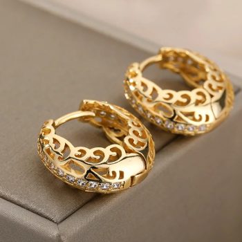 Victoria’s Vogue Weaving Exquisite Hollow Flower Hoop Earrings For Women Stainless Steel 2024 Fashion Wedding Party Gift Earrings Jewelry