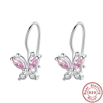 Victoriasvogue Sparkling Crystal Cute Butterfly Earrings 925 Sterling Silver Small Hoop Earrings for Kids Baby Girls Children Jewelry