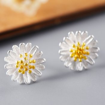Victorias Vogue Real 100% 925 Sterling Silver Daisy Stud Earrings for Women Girls Fashion sterling-silver-jewelry