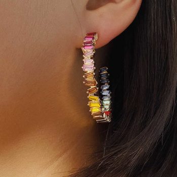 victoria’s vogue Luxury Shiny Rainbow Rhinestone Geometric Round Hoop Earrings Statement Bling Crystal Big Earrings for Women Jewelry