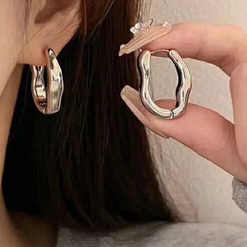 victoria’svogue New Korean Silver Color Hoop Earrings for Women Trend Vintage Geometric Irregular Dislocation Ear Studs Earring Jewelry