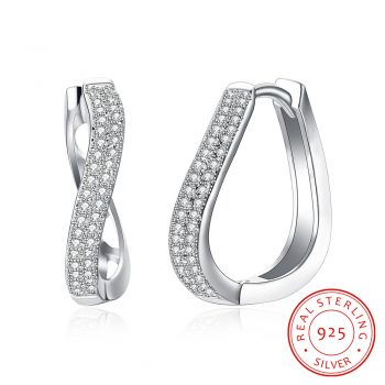 Victoria’s Vogue Classic Style Silver Color Jewelry Curved Hoop Earrings with Zircon for Women Anniversary Jewelry Mother’s Day Gift