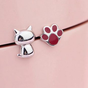 Victoria’s Vogue Creative Fashion Asymmetrical Epoxy Cute Animal 925 Sterling Silver Jewelry Cat And Cat Claw Female Stud Earrings