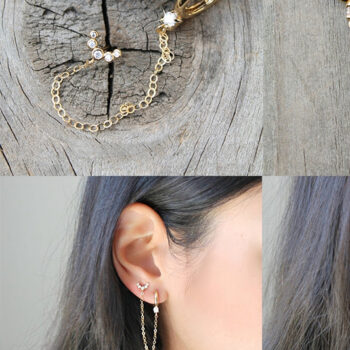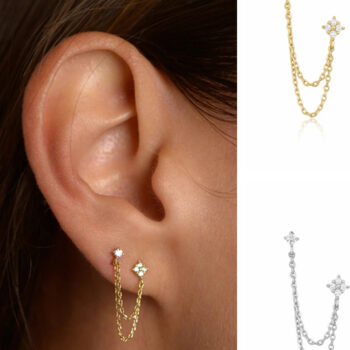 victoria’s vogue 925 Sterling Silver Four Zircons Flower Stud Earrings For Women Double Studs Chain Tassel Piercing Earring 18K Gold Plated
