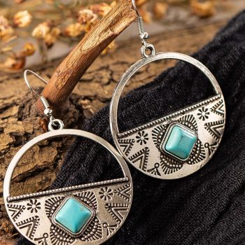 victoria’svogue Antique Silver Color Golden Round Dangle Drop Earrings with Stone for Women Female Ethinic Wedding Ornaments Jewelry Accessories