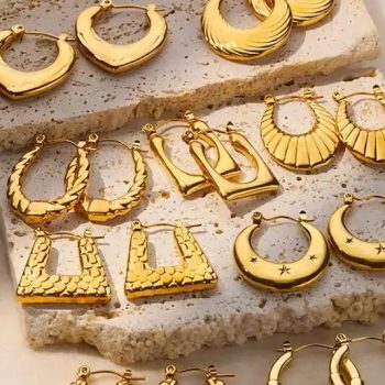 Victoria’s Vogue Vintage Stainless Steel Chunky Round Earrings For Women 2024 New Trending Gold Color Geometric Ear Hoops Earrings Jewelry Gift