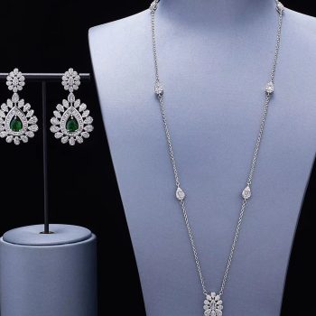 Victoria’s Vogue Saudi Dubai Long Chain Necklace Set for Women Luxury Cubic Zirconia Bridal Jewelry Set Wedding Accessories