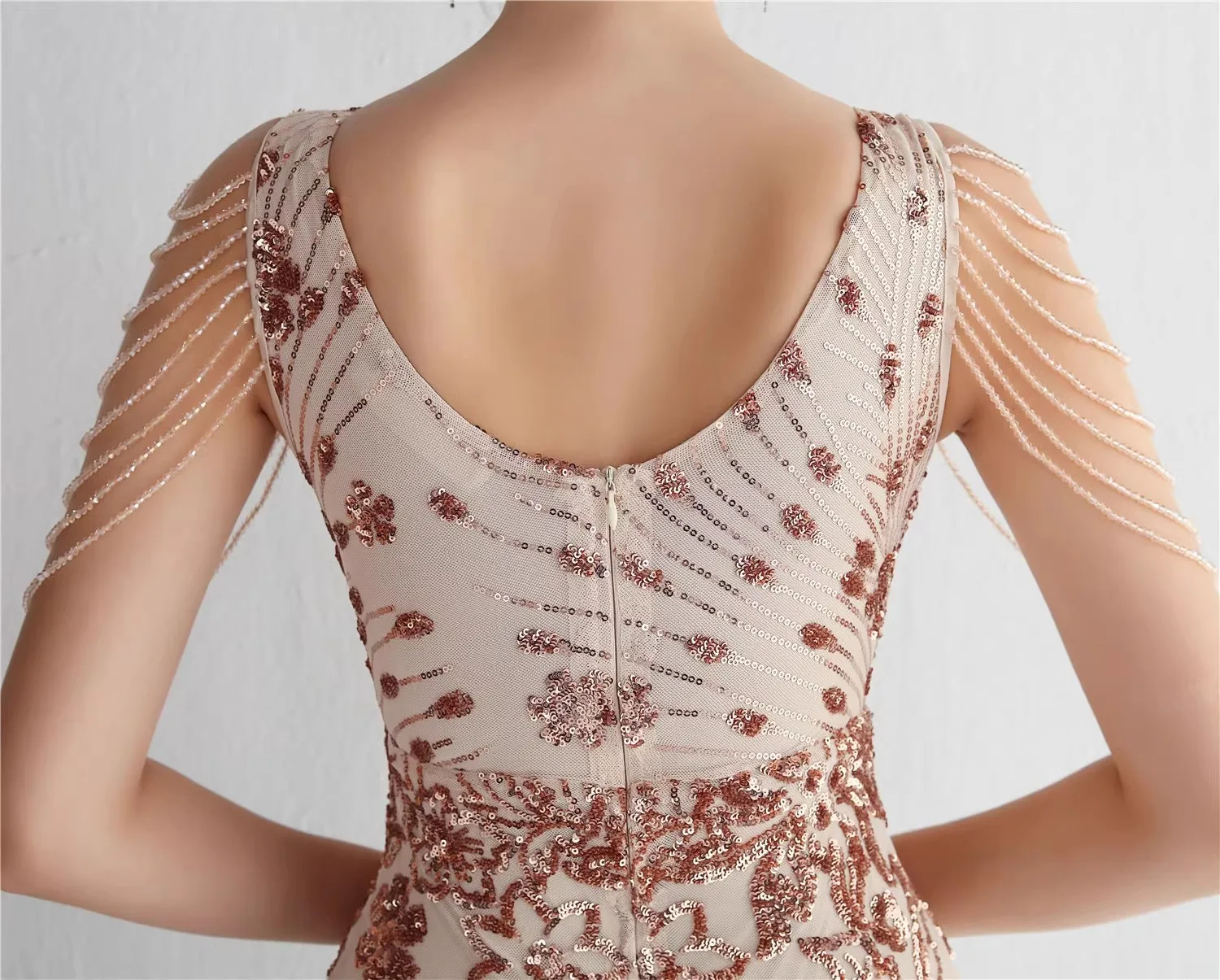 Beaded detailing along the dress adds a sparkling touch, making it stand out in any crowd.