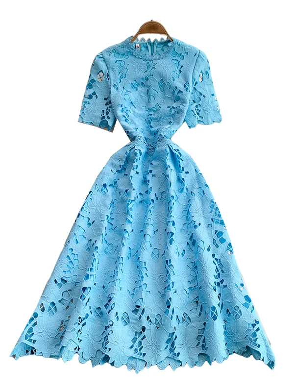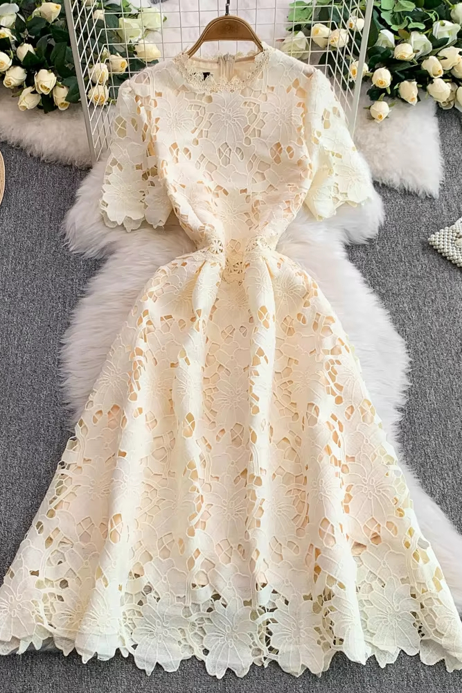Victoria’s Vouge Summer Lace round Ne Dr Women’s High Waist Slimming Long Skirt Korean Sle Commute High Quali Sensation