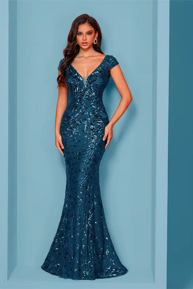 Victoria’s Vogue Blue Evening Dress For Women Long 2025 Luxury Mermaid Formal Sequins Prom Wedding Party Cocktail Dresses
