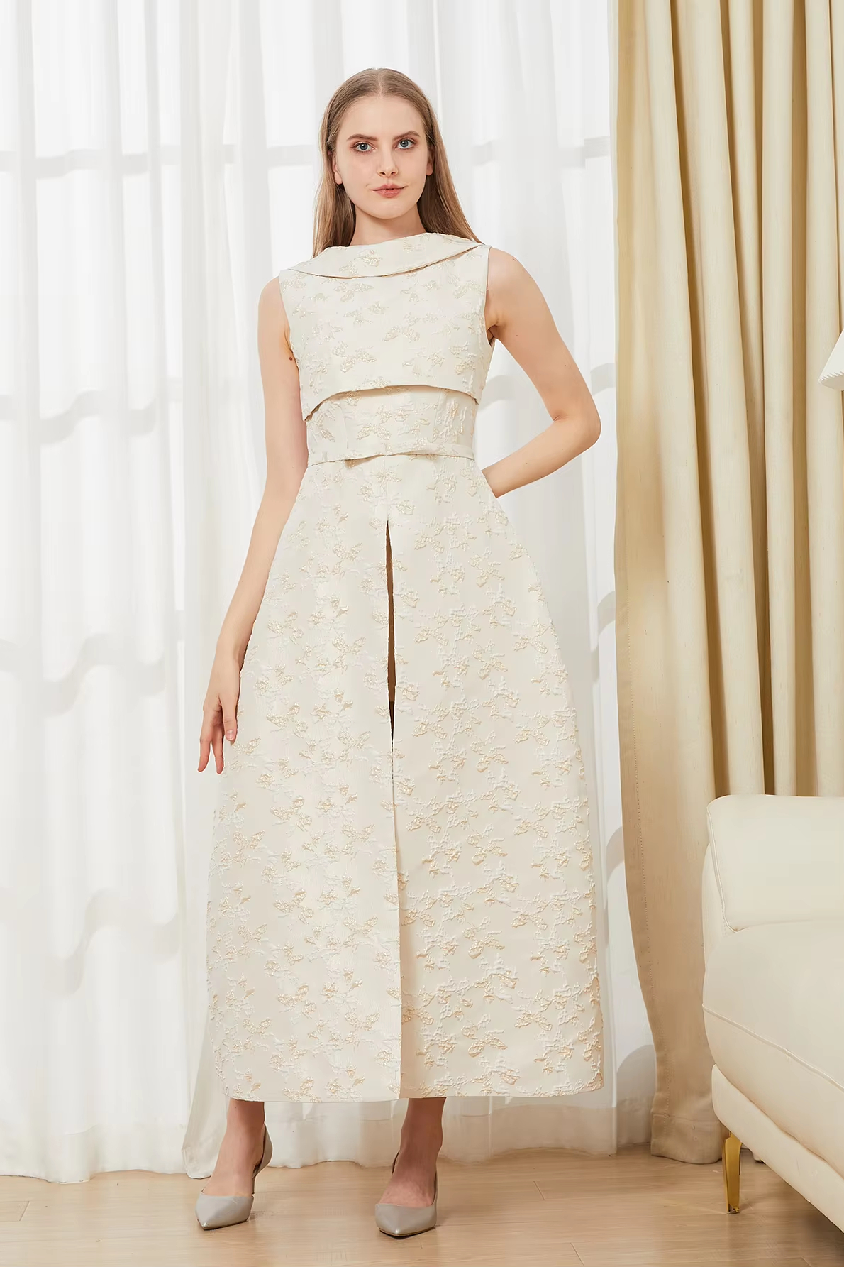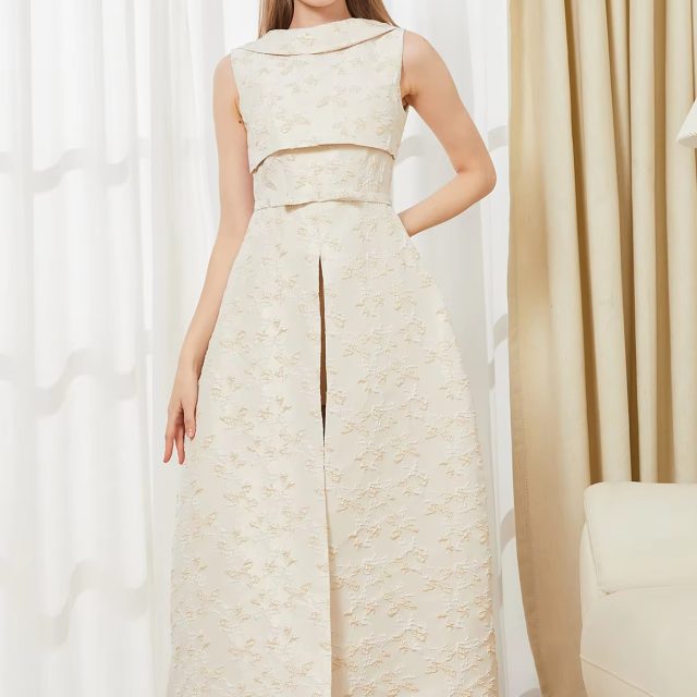 Victoria’s Vogue Elegant Dress Summer New Fashion Women Long Maxi Backless Sleeveless Split Jacquard Dresses Evening Dress