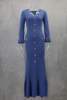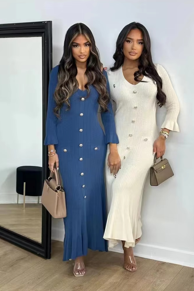 Victoria’s Vogue Elegant Knitted Long Dress Women Flare Sleelve V Neck Ruffles Single Breasted Bodycon Dresses Party Fashion Office Lady Vestidos