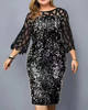 Victoria’s Vogue Elegant Sequin Plus Size 4XL 5XL Women Midi Dress Sexy Casual Evening Party Dresses Gown Wedding Luxury Robe Rouge