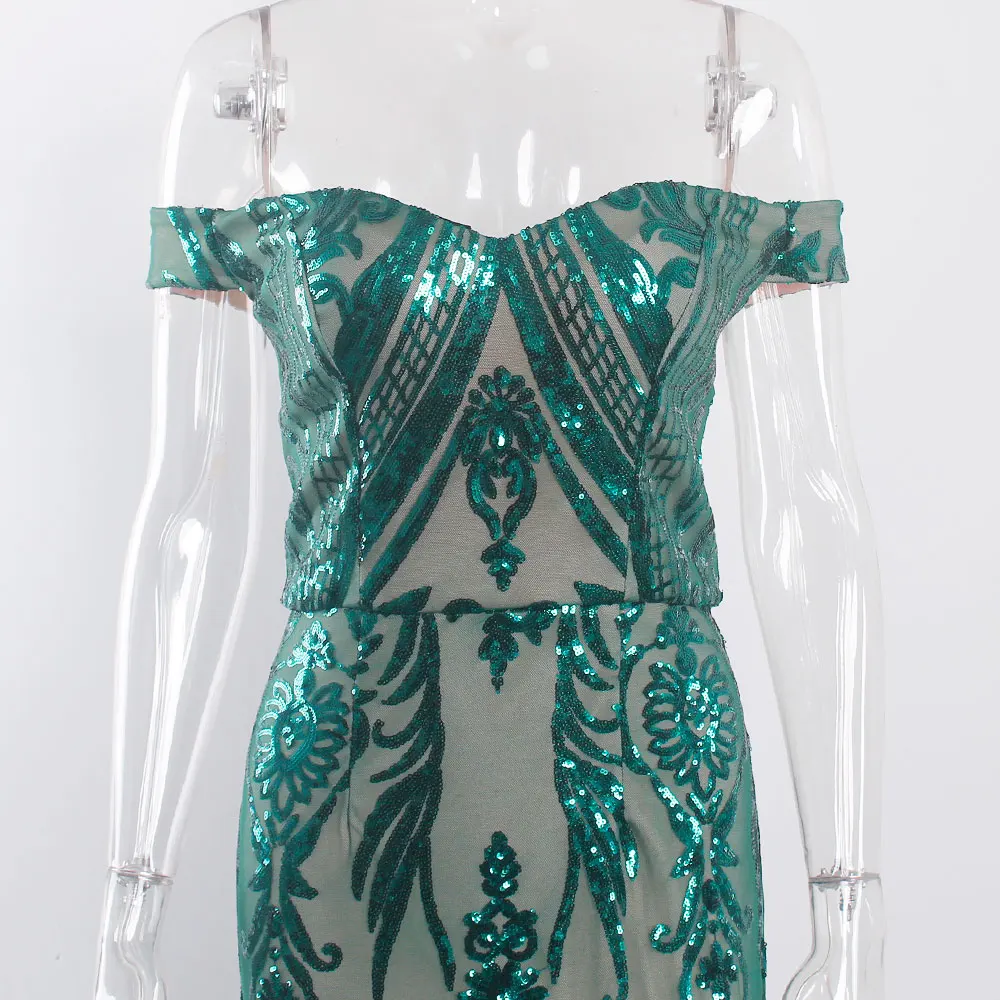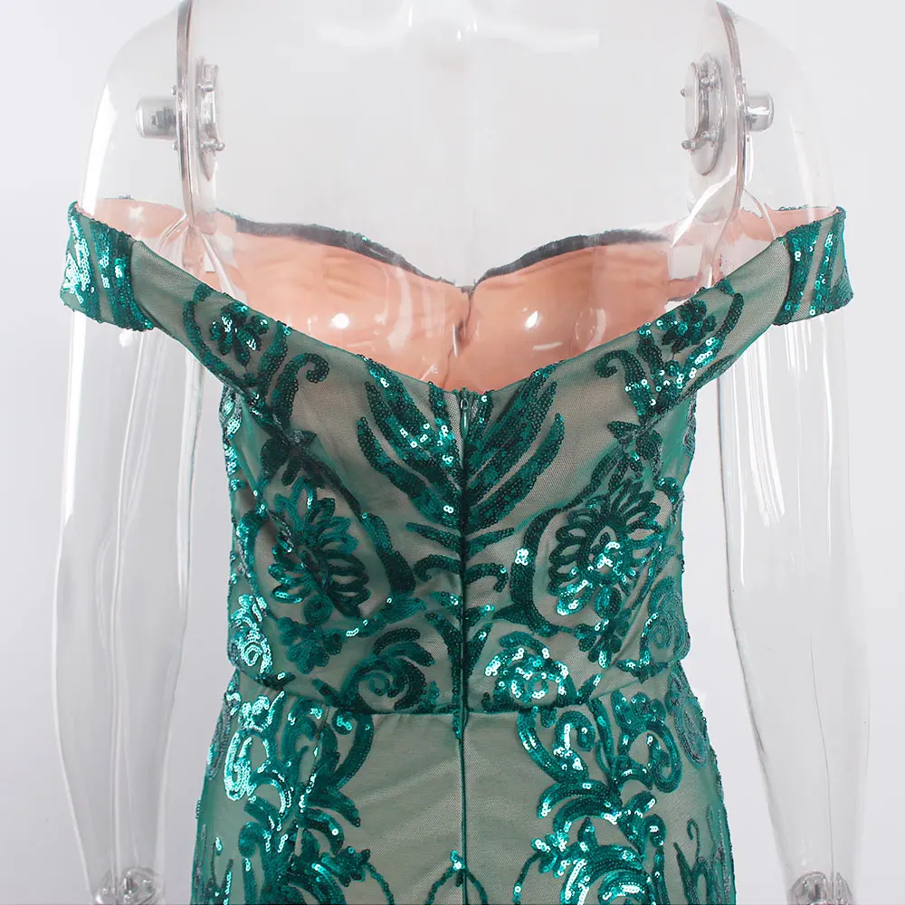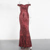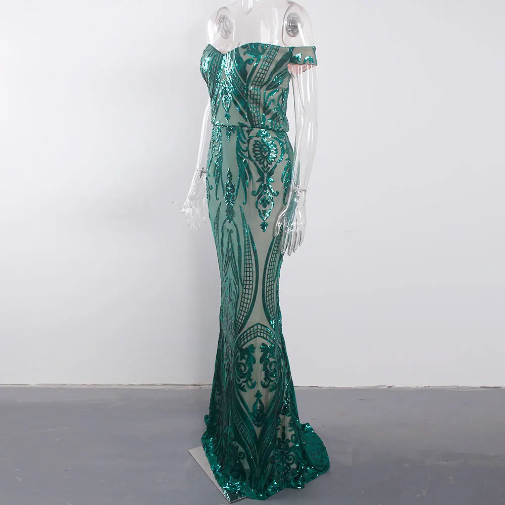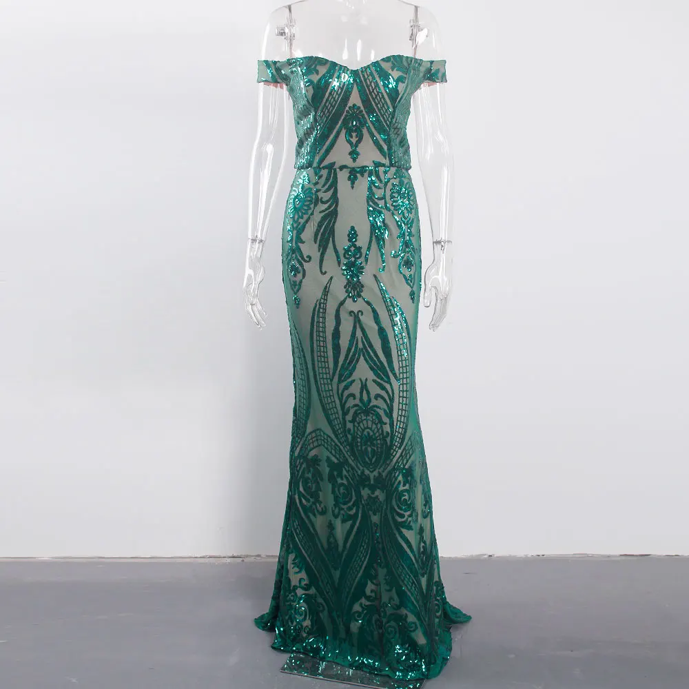 victoria’svogue 2021 Elegant Sequined Green Burgundy Slash Neck Prom Maxi Dress for Women Stretchy Full Lining