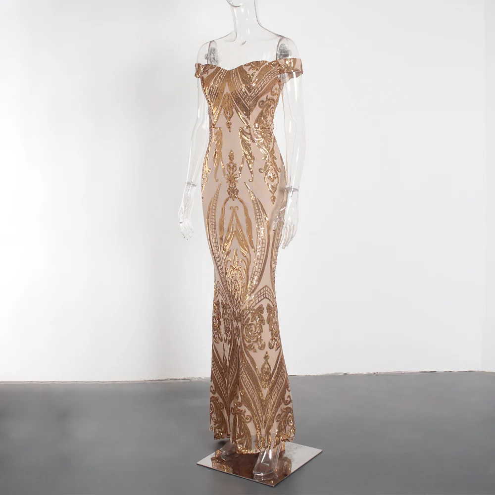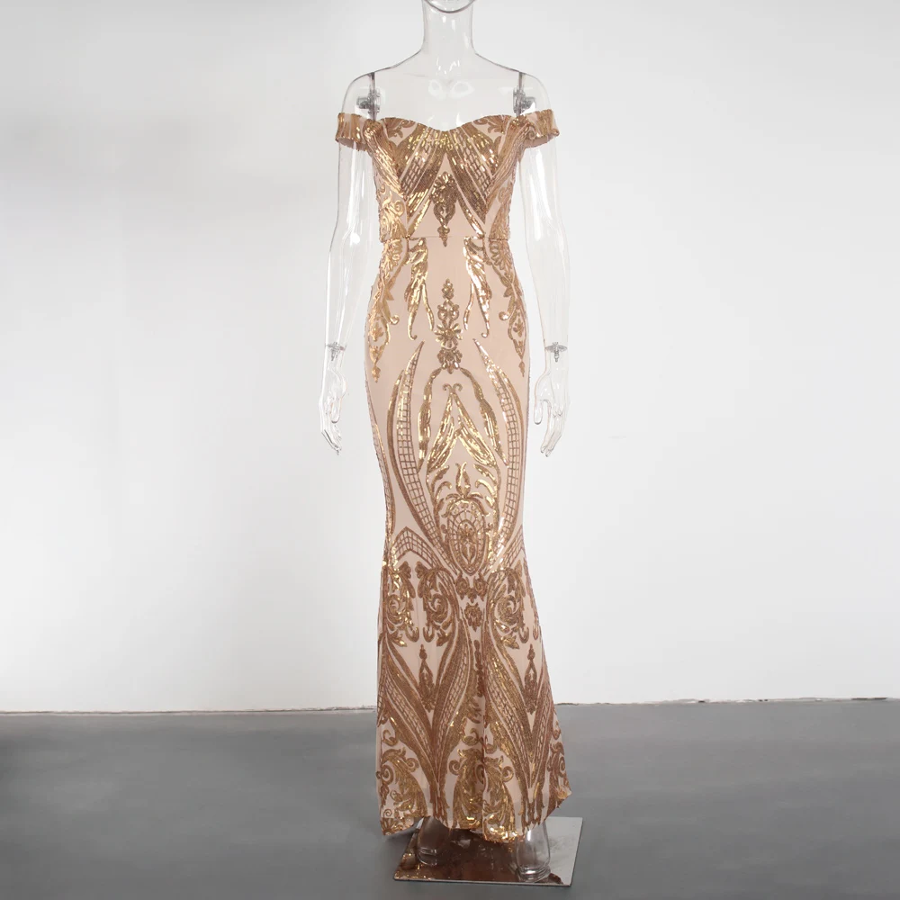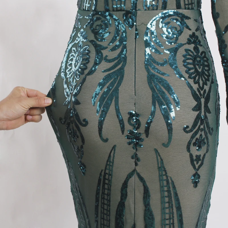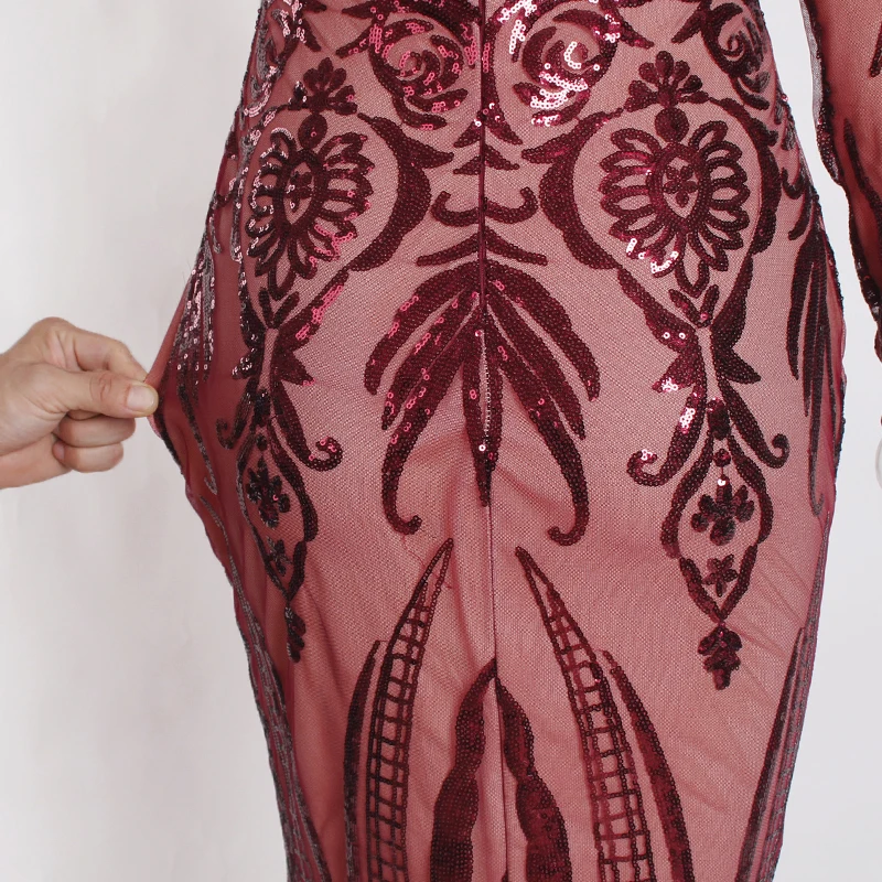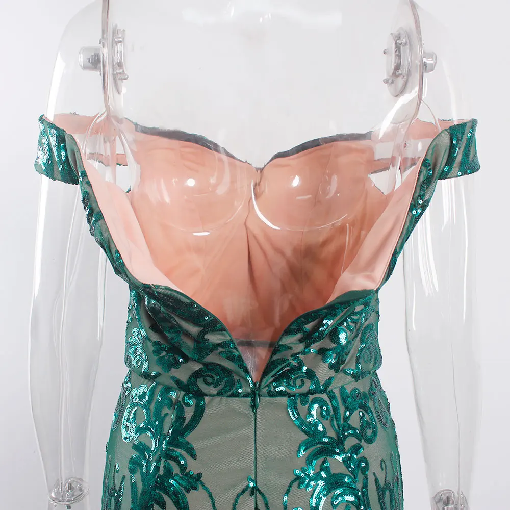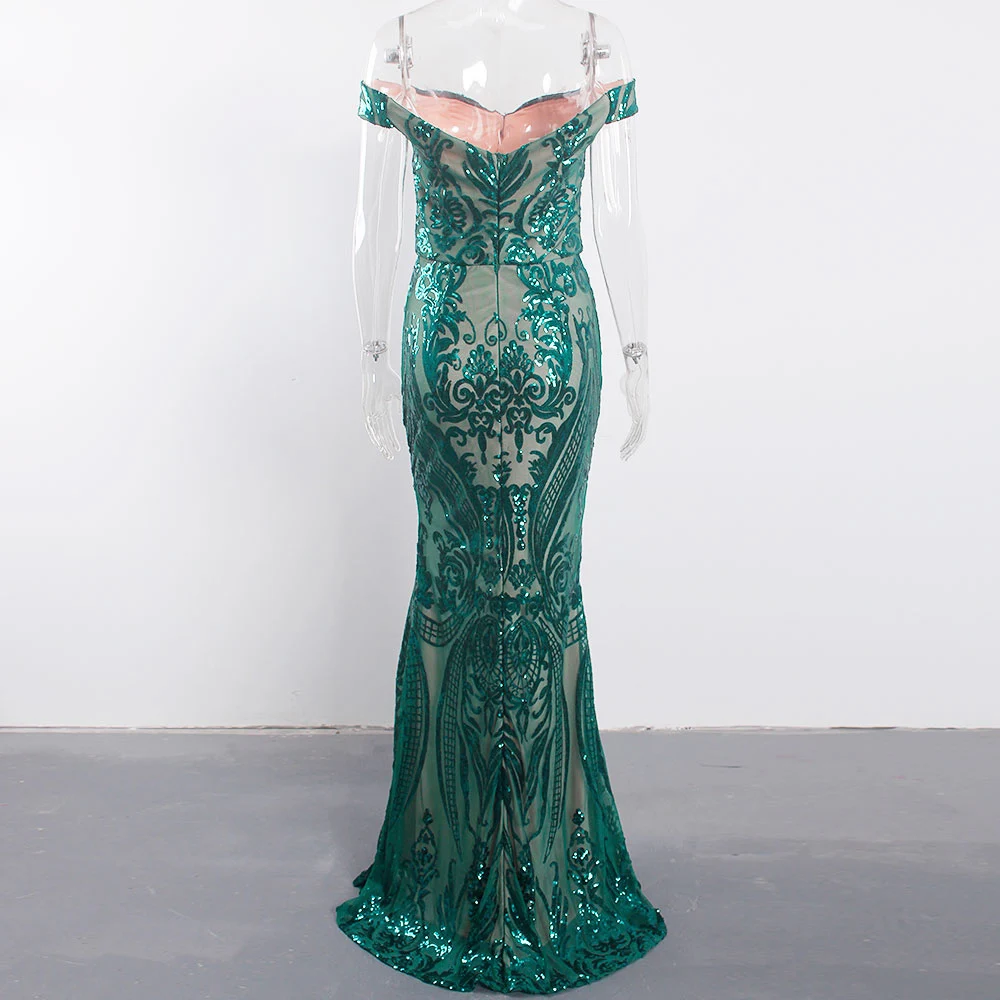 victoria’svogue 2021 Elegant Sequined Green Burgundy Slash Neck Prom Maxi Dress for Women Stretchy Full Lining