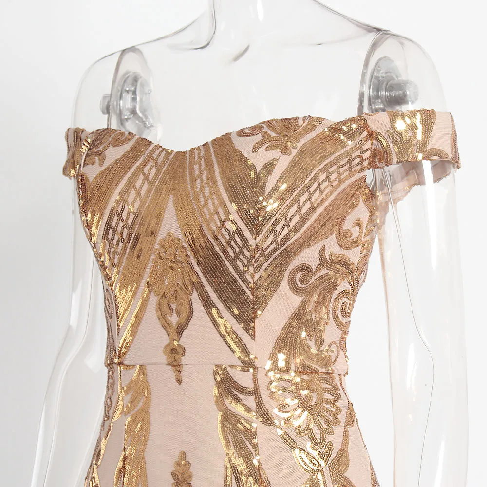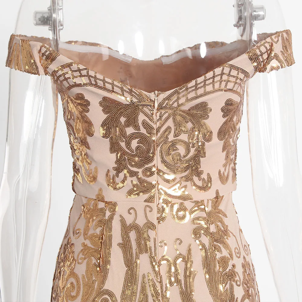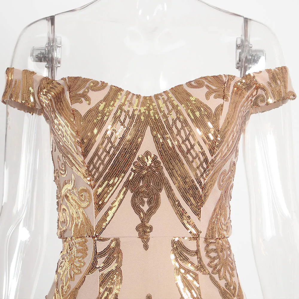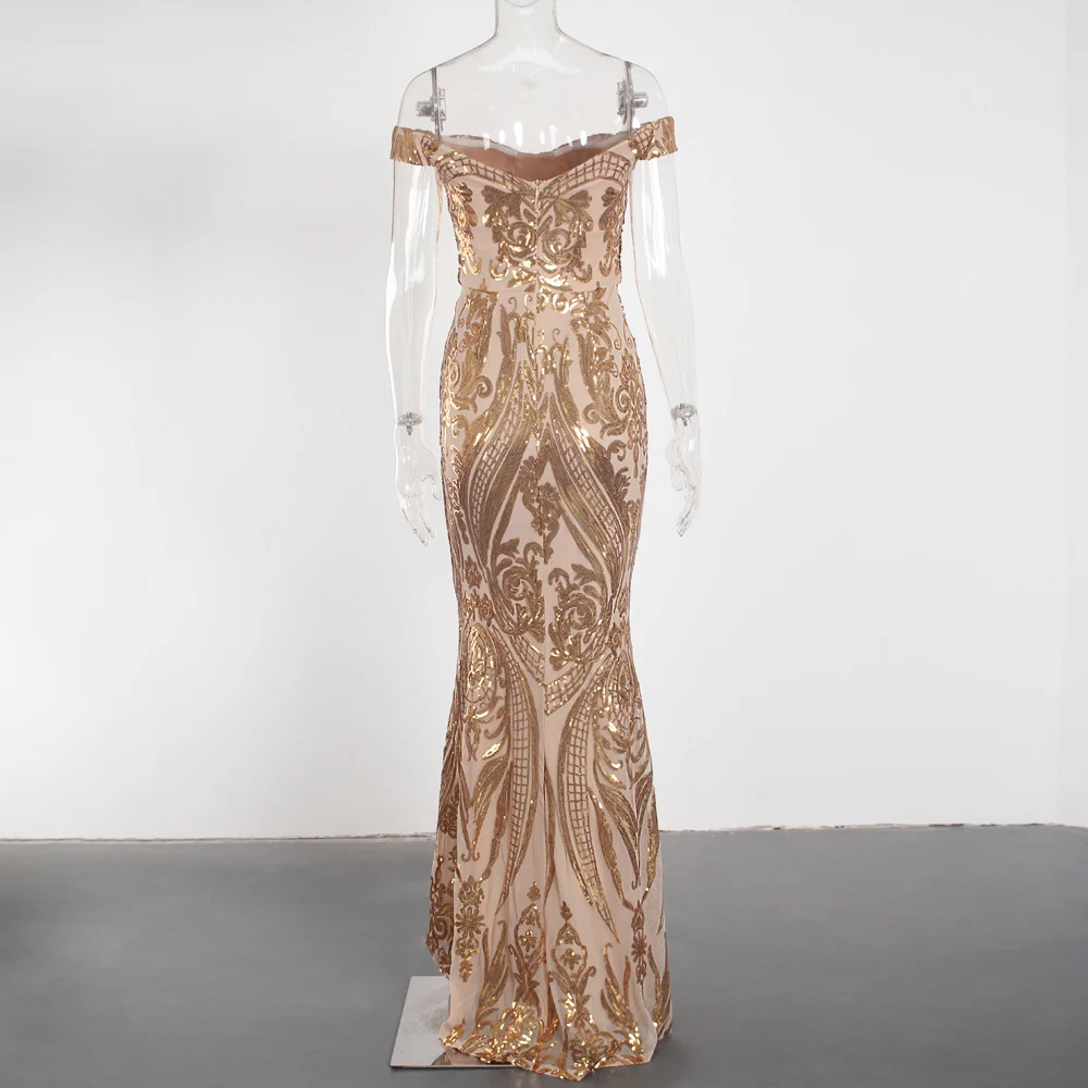 victoria’svogue 2021 Elegant Sequined Green Burgundy Slash Neck Prom Maxi Dress for Women Stretchy Full Lining