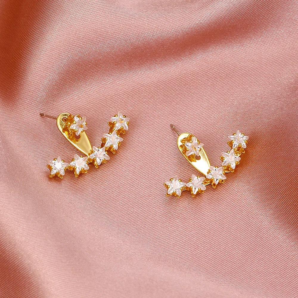 victoria’svogue Elegant Vintage Geometric Star Earrings Front Back Double Side Stud Earrings for Women Crystal Ear Piercing Jewelry Pendientes