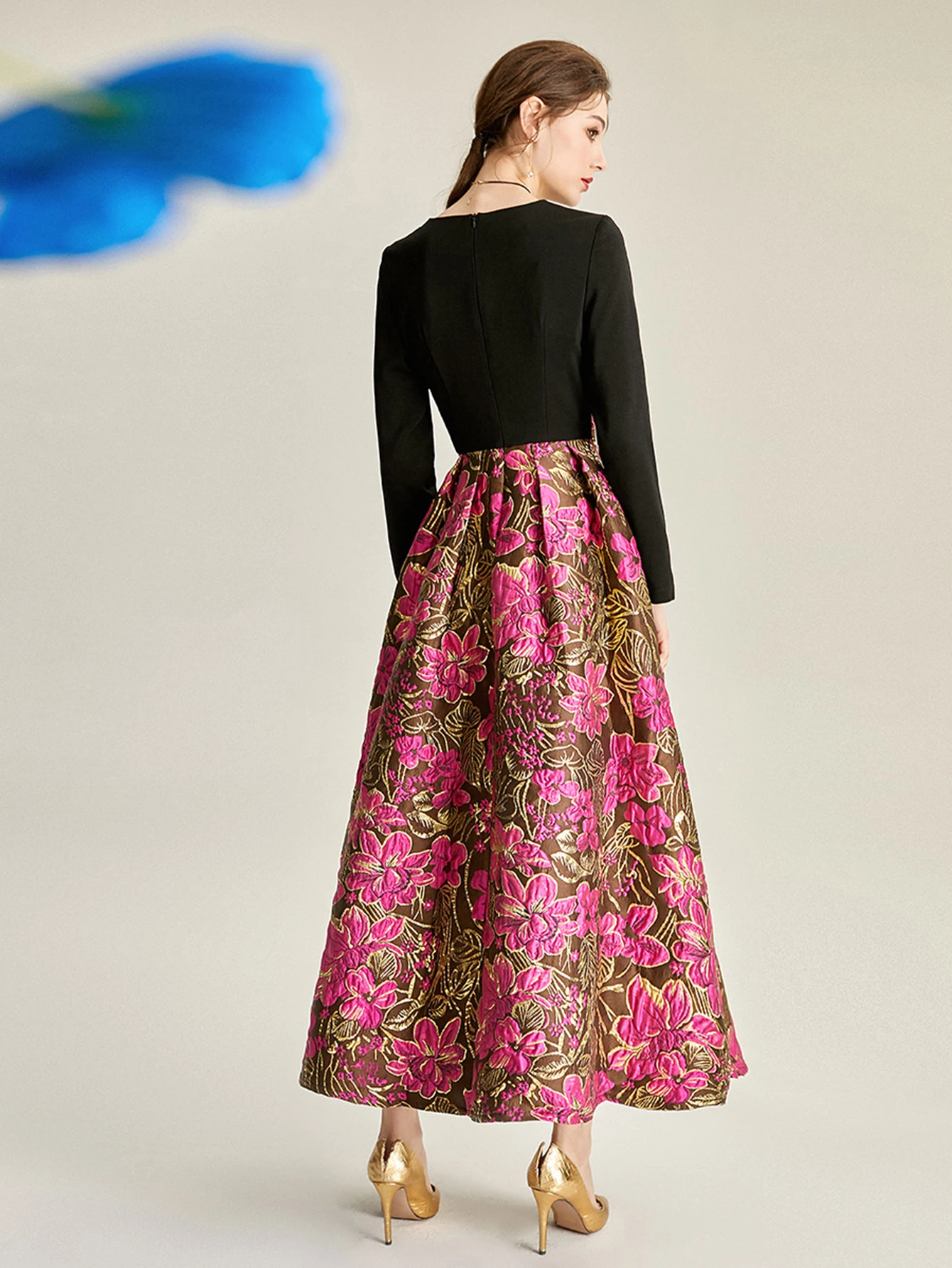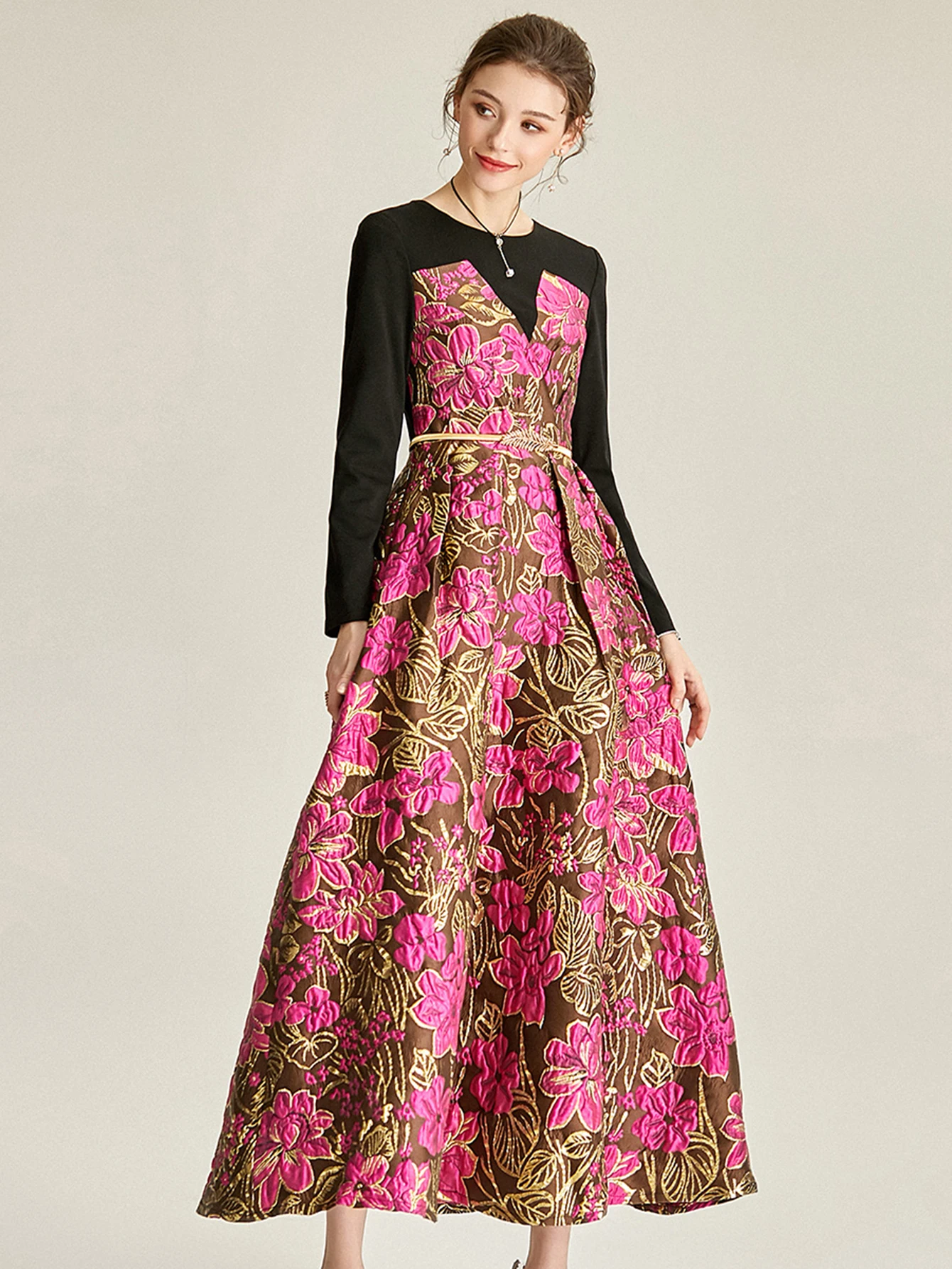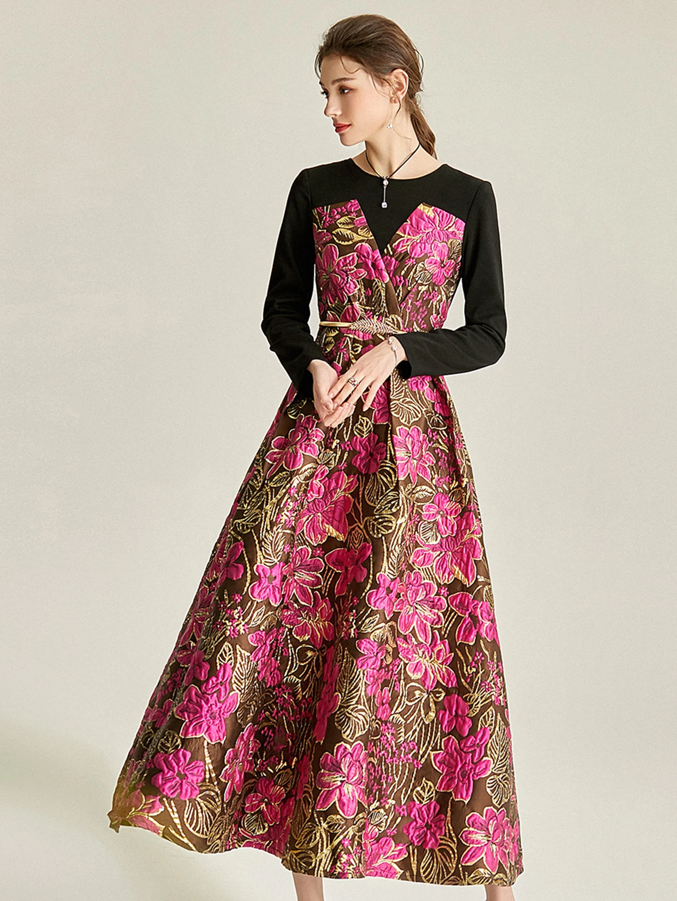 Victoria’s Vogue Women Long Maxi Jacquard Dress New Party Evening Spliced Spring Autumn Vintage Floral Ball Gown