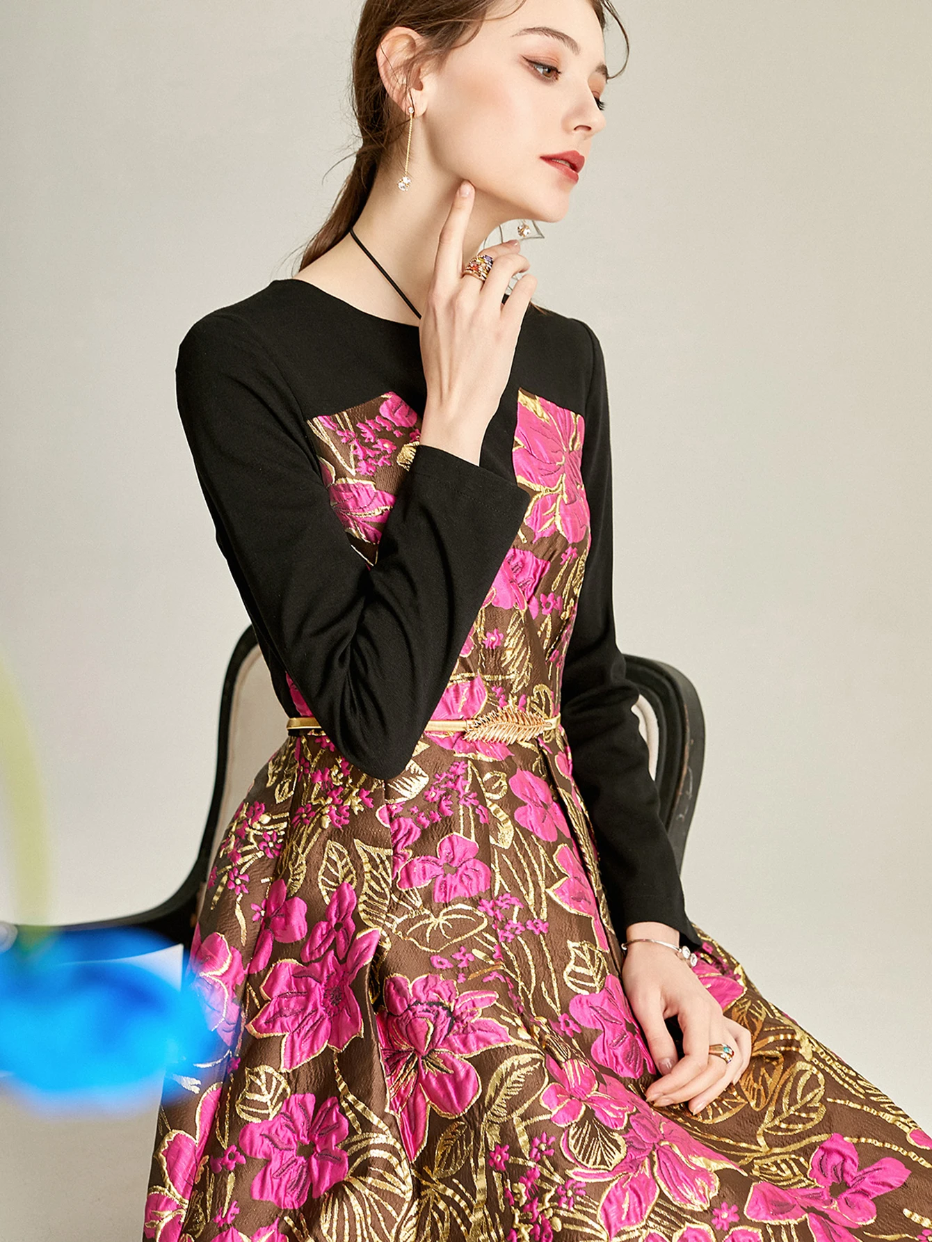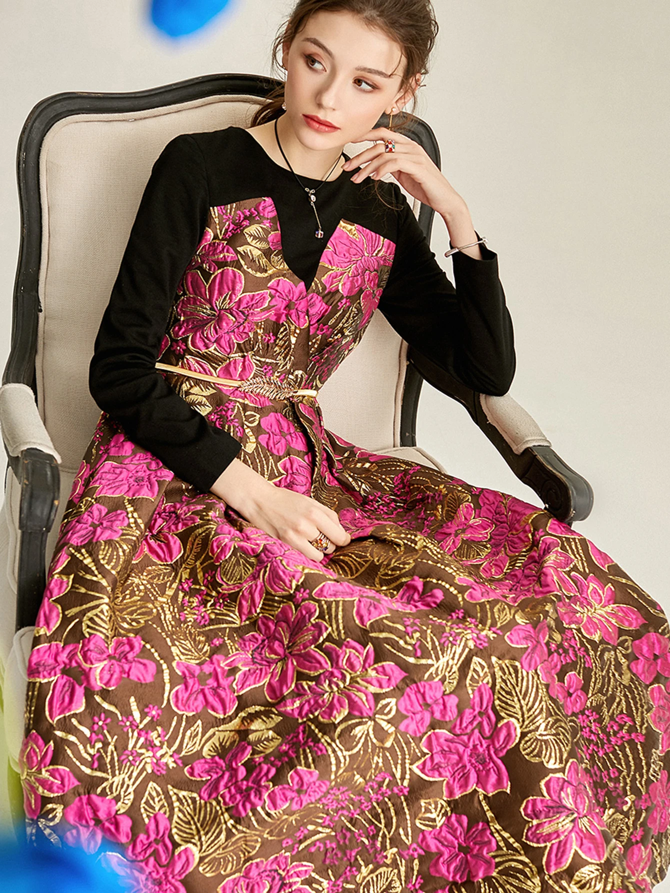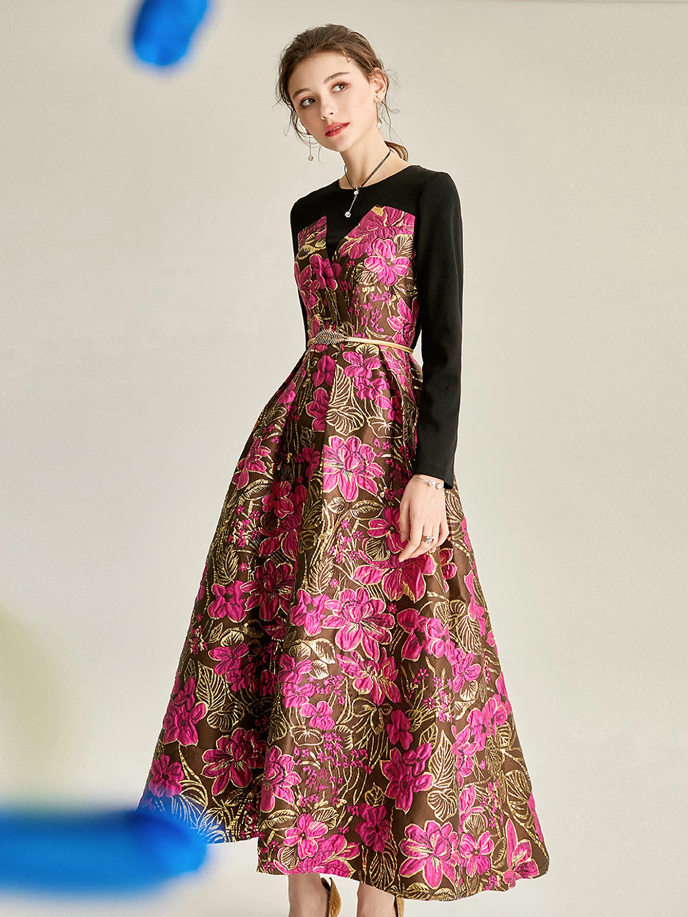 Victoria’s Vogue Women Long Maxi Jacquard Dress New Party Evening Spliced Spring Autumn Vintage Floral Ball Gown